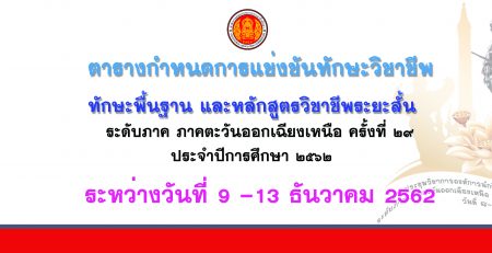 ตารางการแข่งขันทักษะวิชาชีพ ทักษะพื้นฐาน และหลักสูตรวิชาระยะสั้น ระดับภาค ภาคตะวันออกเฉียงเหนือ ปีการศึกษา 2562