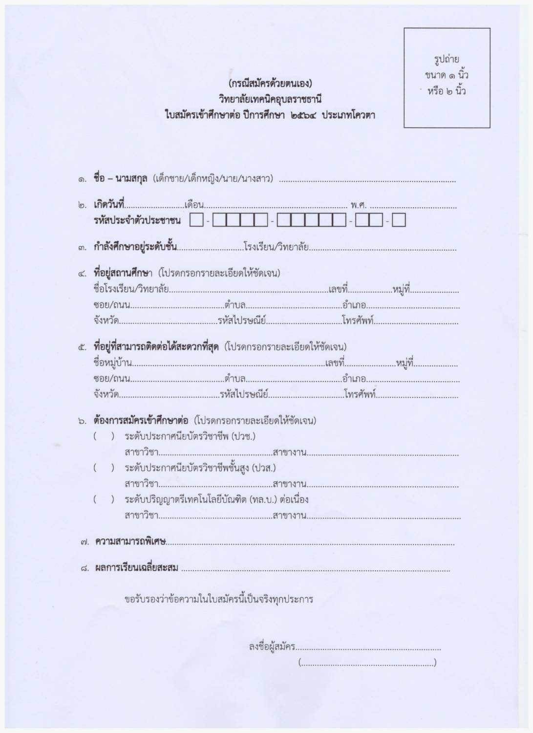 ใบสมัครเข้าศึกษาต่อ ปีการศึกษา 2564 รอบโควต้า