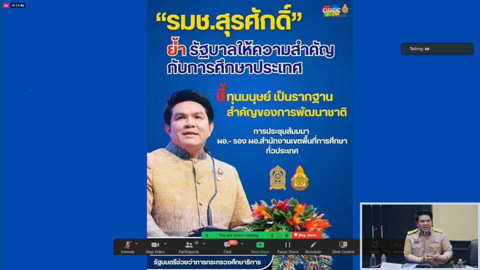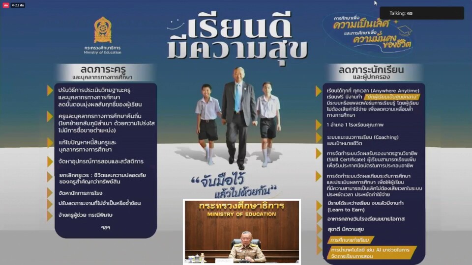 การประชุมมอบนโยบายการศึกษา และแนวทางขับเคลื่อนนโยบาย “เรียนดี มีความสุข” ให้แก่ผู้บริหาร และบุคลากรในสังกัดกระทรวงศึกษาธิการ ผ่านระบบออนไลน์ Zoom Meeting