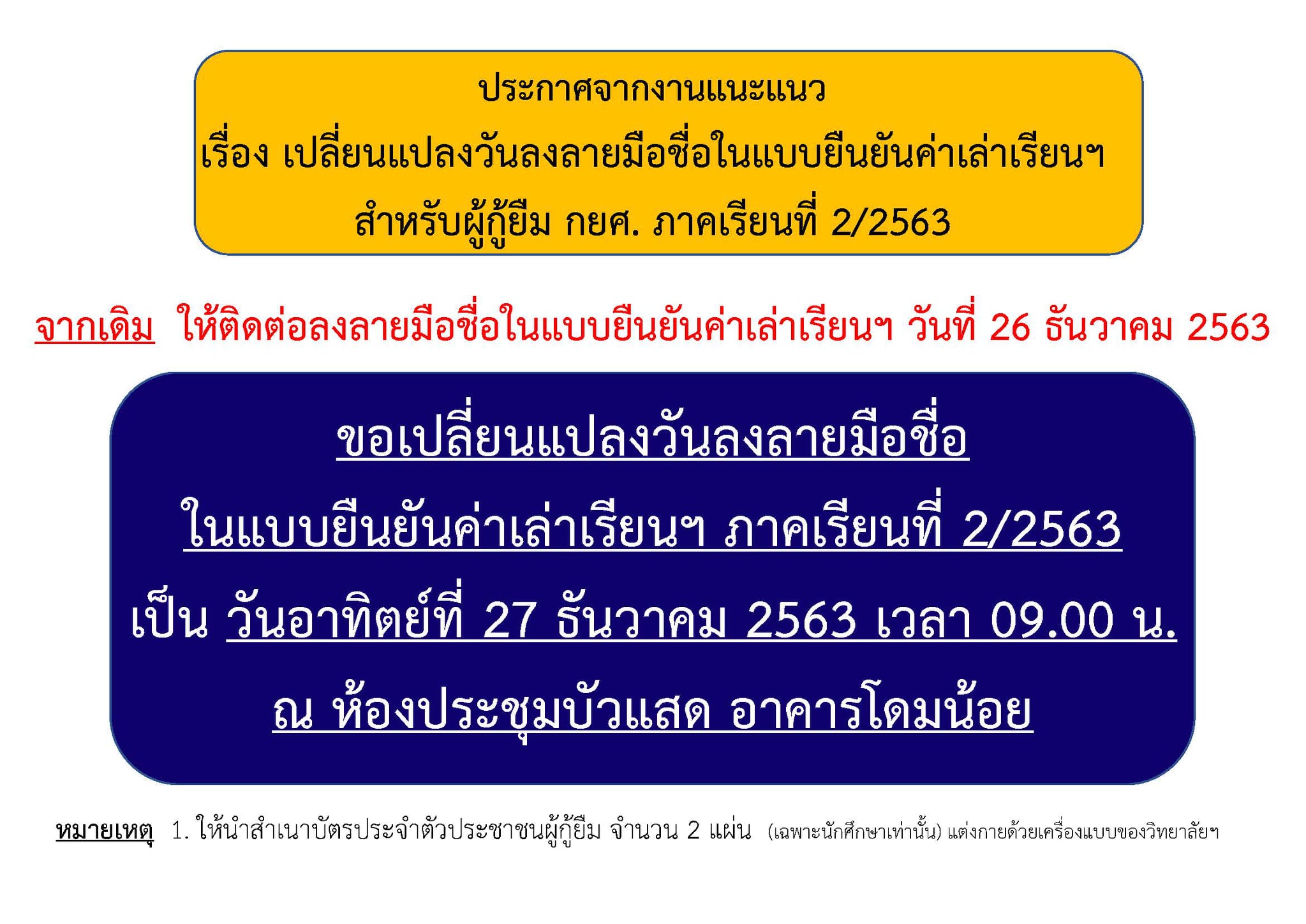 เปลี่ยนแปลงวันลงลายมือชื่อในแบบยืนยันคาเล่าเรียนฯ สำหรับผู้กู้ยืม กยศ.ภาคเรียนที่ 2/2563