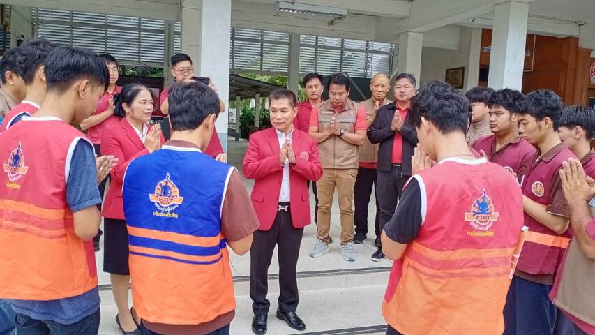 วันที่ ๒๕ กันยายน ๒๕๖๗ เวลา ๐๘.๐๐ น. นายธาตรี พิบูลมณฑา ผู้อำนวยการวิทยาลัยเทคนิคอุบลราชธานี ปฏิบัติหน้าที่ ผู้อำนวยการสำนักงานอาชีวศึกษาจังหวัดอุบลราชธานี กล่าวอวยพรพร้อมส่งกำลังใจให้แก่คณะครูและนักเรียน นักศึกษา แผนกวิชาช่างยนต์/เครื่องกล และแผนกวิชาช่างไฟฟ้ากำลัง วิทยาลัยเทคนิคอุบลราชธานีที่จะเดินทางไปปฏิบัติหน้าที่ช่วยเหลือผู้ประสบอุทกภัยน้ำท่วม ณ จังหวัดหนองคาย ระหว่างวันที่ ๒๖ – ๒๗ กันยายน ๒๕๖๗ ทั้งนี้มีคณะผู้บริหาร นายนรา เดชะคำภู หัวหน้าศูนย์ซ่อมสร้างเพื่อชุมชน (Fix it Center) แบบถาวร วิทยาลัยเทคนิคอุบลราชธานี และตัวแทนคณะครู นักเรียน นักศึกษา วิทยาลัยเทคนิคอุบลราชธานีร่วมส่งกำลังใจให้แก่ผู้ปฏิบัติหน้าที่และผู้ประสบอุทกภัยในครั้งนี้