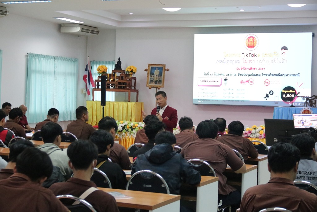วันที่ ๒๕ กันยายน ๒๕๖๗ เวลา ๐๘.๓๐ น. นายธาตรี พิบูลมณฑา ผู้อำนวยการวิทยาลัยเทคนิคอุบลราชธานี ให้เกียรติเป็นประธานในพิธีปิดและมอบรางวัลแก่ผู้ชนะโครงการ Tiktok(#) แฮชแท็ก เทคนิคอุบลไม่เอาบุหรี่บุหรี่ไฟฟ้า ปีการศึกษา ๒๕๖๗ ณ ห้องประชุมบัวแสด วิทยาลัยเทคนิคอุบลราชธานี โดยมี นายไวพจน์ ศรีธัญ รองผู้อำนวยการฝ่ายพัฒนากิจการนักเรียนนักศึกษา นายสรรพสิทธิ์ ละออเอี่ยม หัวหน้างานปกครอง พร้อมด้วยคณะครู และบุคลากรทางการศึกษาที่เกี่ยวข้อง นำตัวแทนนักเรียน นักศึกษา วิทยาลัยเทคนิคอุบลราชธานี เข้าร่วมพิธีเปิดอย่างพร้อมเพรียง ทั้งนี้เพื่อสนับสนุนส่งเสริมให้นักเรียน นักศึกษา ได้มีความสามารถ และทักษะในการผลิตผลงานสื่อโซเชียลออนไลน์ที่มีคุณภาพ และเพื่อให้นักเรียนนักศึกษา คิดออกแบบสื่อประชาสัมพันธ์ โดยมี แฮชแท็กเทคนิคอุบลไม่เอาบุหรี่/บุหรี่ไฟฟ้า #เรียนดีมีความสุข