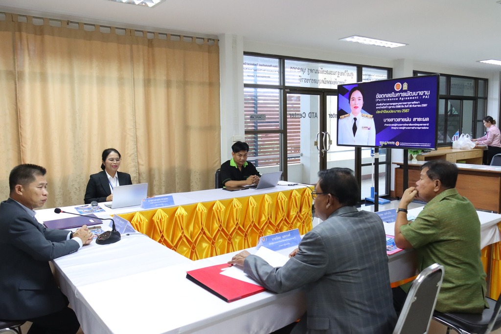 วันที่ ๒๖ กันยายน ๒๕๖๗ เวลา ๑๓.๐๐ น. นายธาตรี พิบูลมณฑา ผู้อำนวยการวิทยาลัยเทคนิคอุบลราชธานี ให้เกียรติเป็นประธานในการประเมินการพัฒนางานตามข้อตกลง (PA) สำหรับข้าราชการครูและบุคลากรทางการศึกษา ตำแหน่ง ผู้บริหารสถานศึกษา ประจำปีงบประมาณ พ.ศ. ๒๕๖๗ ณ ห้องศูนย์วิทยฐานะและพัฒนาครู บุคลากร วิทยาลัยเทคนิคอุบลราชธานี (ATD Center) ในการนี้ได้รับเกียรติจาก นายนิยม แสงวงศ์ อดีตผู้อำนวยการวิทยาลัยเทคนิคอุบลราชธานี และนายเกษม มะคำแป้น อดีตผู้อำนวยการวิทยาลัยการอาชีพวารินชำราบ เป็นกรรมการในการประเมินการพัฒนางานตามข้อตกลง (PA) โดยมี นางสาวสายฝน สาระผลรองผู้อำนวยการฝ่ายบริหารทรัพยากร เป็นผู้รับการประเมินในครั้งนี้