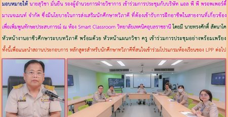 วันที่ ๒๗ กันยายน ๒๕๖๗ เวลา ๑๐.๐๐ น. นายธาตรี พิบูลมณฑา ผู้อำนวยการวิทยาลัยเทคนิคอุบลราชธานี มอบหมายให้ นางสาวสายฝน สาระผล รองผู้อำนวยการฝ่ายบริหารทรัพยากร เป็นประธานในการประชุมเตรียมความพร้อมการจัดงาน “เกษียณเกษมสันต์ รักมั่นมุทิตา” แสดงมุทิตาจิตผู้เกษียณอายุราชการ ประจำปีงบประมาณ พ.ศ. ๒๕๖๗ ณ ห้องสมาคมศิษย์เก่า วิทยาลัยเทคนิคอุบลราชธานี โดยมี นายภัทรศักดิ์ ภัทรธรรมพิบูล หัวหน้างานบุคลากร พร้อมด้วยคณะครูที่เกี่ยวข้อง เข้าร่วมการประชุมอย่างพร้อมเพรียง ทั้งนี้เพื่อให้การดำเนินงานเป็นไปด้วยความเรียบร้อยต่อไป