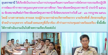 วันที่ ๒๗ กันยายน ๒๕๖๗ เวลา ๑๘.๐๐ น. นายธาตรี พิบูลมณฑา ผู้อำนวยการวิทยาลัยเทคนิคอุบลราชธานี ปฏิบัติหน้าที่ ผู้อำนวยการสำนักงานอาชีวศึกษาจังหวัดอุบลราชธานี ให้เกียรติเข้าร่วมงานมุทิตาจิต ปีงบประมาณ พ.ศ. ๒๕๖๗ “อุ่นไอรัก ถักทอใจ สานสายใย White & Blue” ณ วิทยาลัยเทคนิคศรีสะเกษ ซึ่งในปีนี้วิทยาลัยเทคนิคศรีสะเกษ มีผู้เกษียณอายุราชการทั้งหมด ๖ ท่าน นำโดย ดร.ณัฐวิชญ์ ศิริรัชฎานันท์ ผู้อำนวยการวิทยาลัยเทคนิคศรีสะเกษ นายสมาน สมจริง รองผู้อำนวยการวิทยาลัยเทคนิคศรีสะเกษ และคณะครู วิทยาลัยเทคนิคศรีสะเกษ ทั้ง ๔ ท่าน ทั้งนี้มีนายไวพจน์ ศรีธัญ รองผู้อำนวยการฝ่ายพัฒนากิจการนักเรียนนักศึกษา นางราตรี สะดีวงศ์ รองผู้อำนวยการฝ่ายแผนงานและความร่วมมือ นางสาวสายฝน สาระผล รองผู้อำนวยการฝ่ายบริหารทรัพยากร พร้อมด้วยคณะผู้บริหารสถานศึกษา ครู และบุคลากรทางการศึกษา ในสังกัดสำนักงานอาชีวศึกษาจังหวัดอุบลราชธานี และสังกัดสำนักงานอาชีวศึกษาจังหวัดศรีสะเกษ เข้าร่วมกิจกรรมอย่างพร้อมเพรียง
