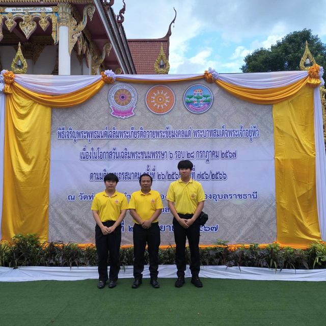 วันที่ ๒๘ กันยายน ๒๕๖๗ เวลา ๑๓.๓๐ น. นายธาตรี พิบูลมณฑา ผู้อำนวยการวิทยาลัยเทคนิคอุบลราชธานี มอบหมายให้ นายสุรพงศ์ กันตะบุตร ครูแผนกวิชาช่างอากาศยาน และตัวแทนบุคลากรทางการศึกษา วิทยาลัยเทคนิคอุบลราชธานี เข้าร่วมพิธีเจริญพระพุทธมนต์ เฉลิมพระเกียรติ ถวายพระพรชัยมงคลแด่ พระบาทสมเด็จพระเจ้าอยู่หัว เนื่องในโอกาสวันเฉลิมพระชนมพรรษา ๖ รอบ ๒๘ กรกฎาคม ๒๕๖๗ ณ วัดท่าวังหิน จังหวัดอุบลราชธานี โดยได้รับเกียรติจาก นายสมมาฏฐ์ โพธิ ปลัดจังหวัดอุบลราชธานี เป็นประธานในพิธี ทั้งนี้มีหัวหน้าส่วนราชการ และหน่วยงานต่างๆ เข้าร่วมการประชุมอย่างพร้อมเพรียง