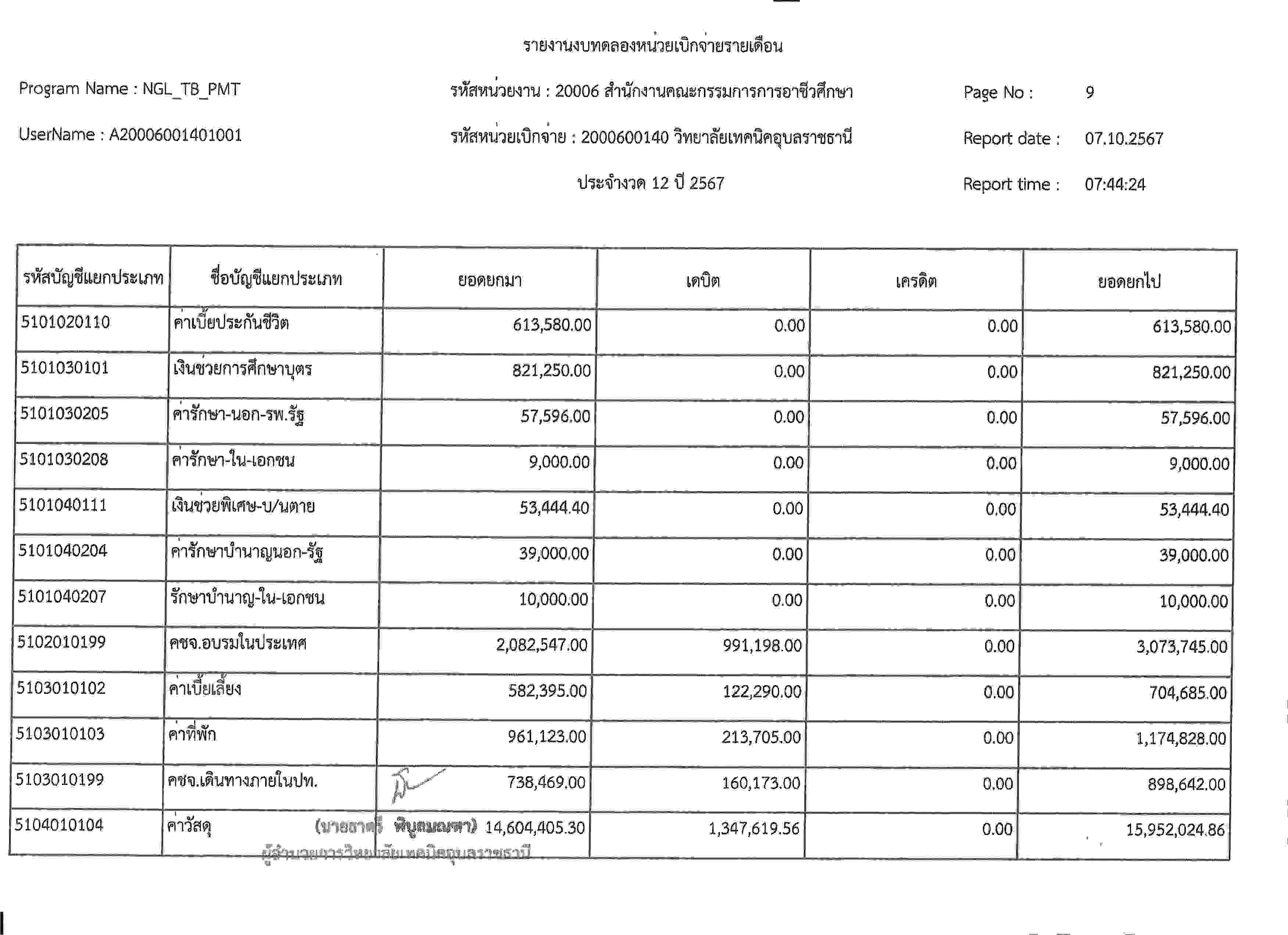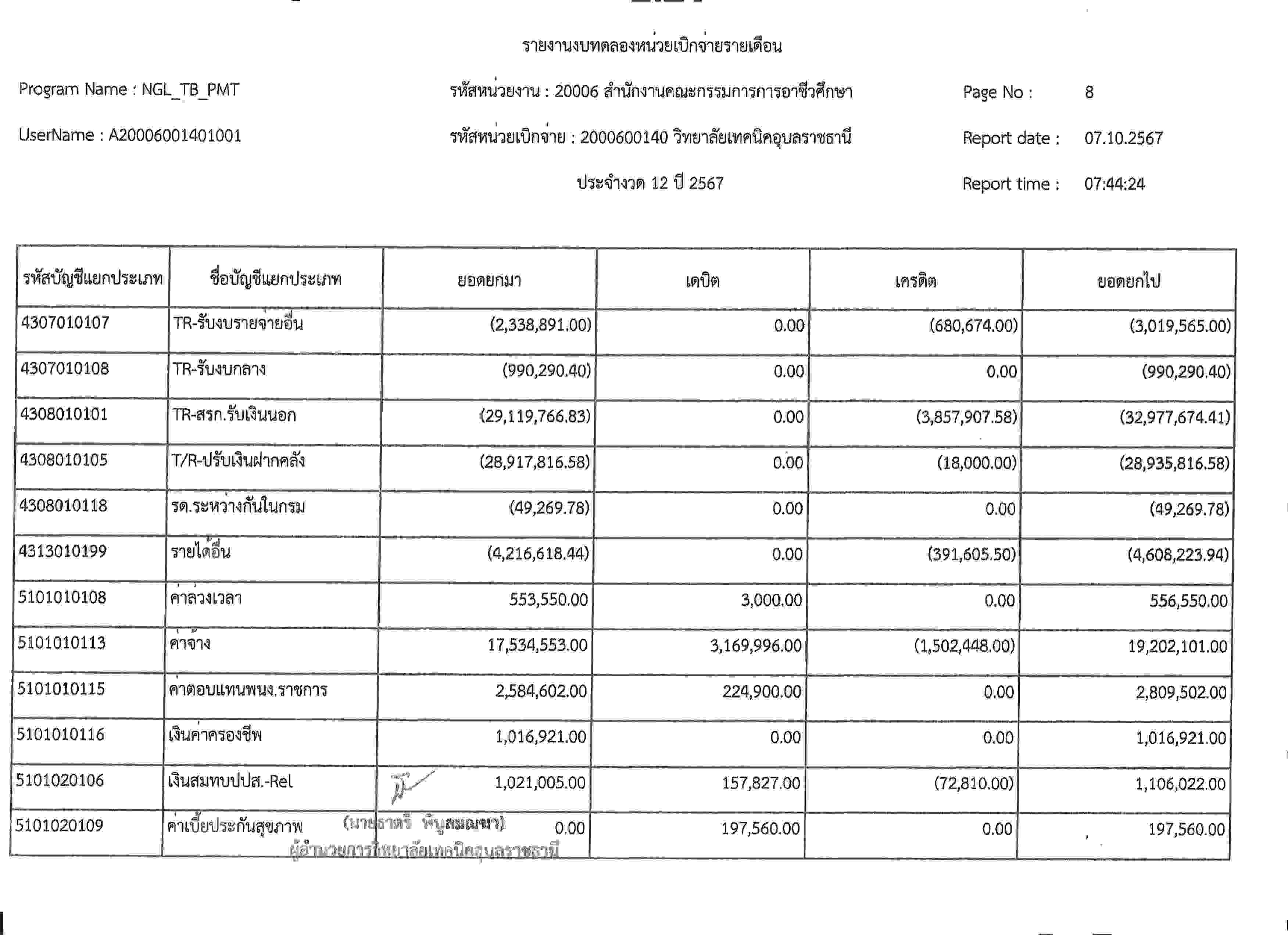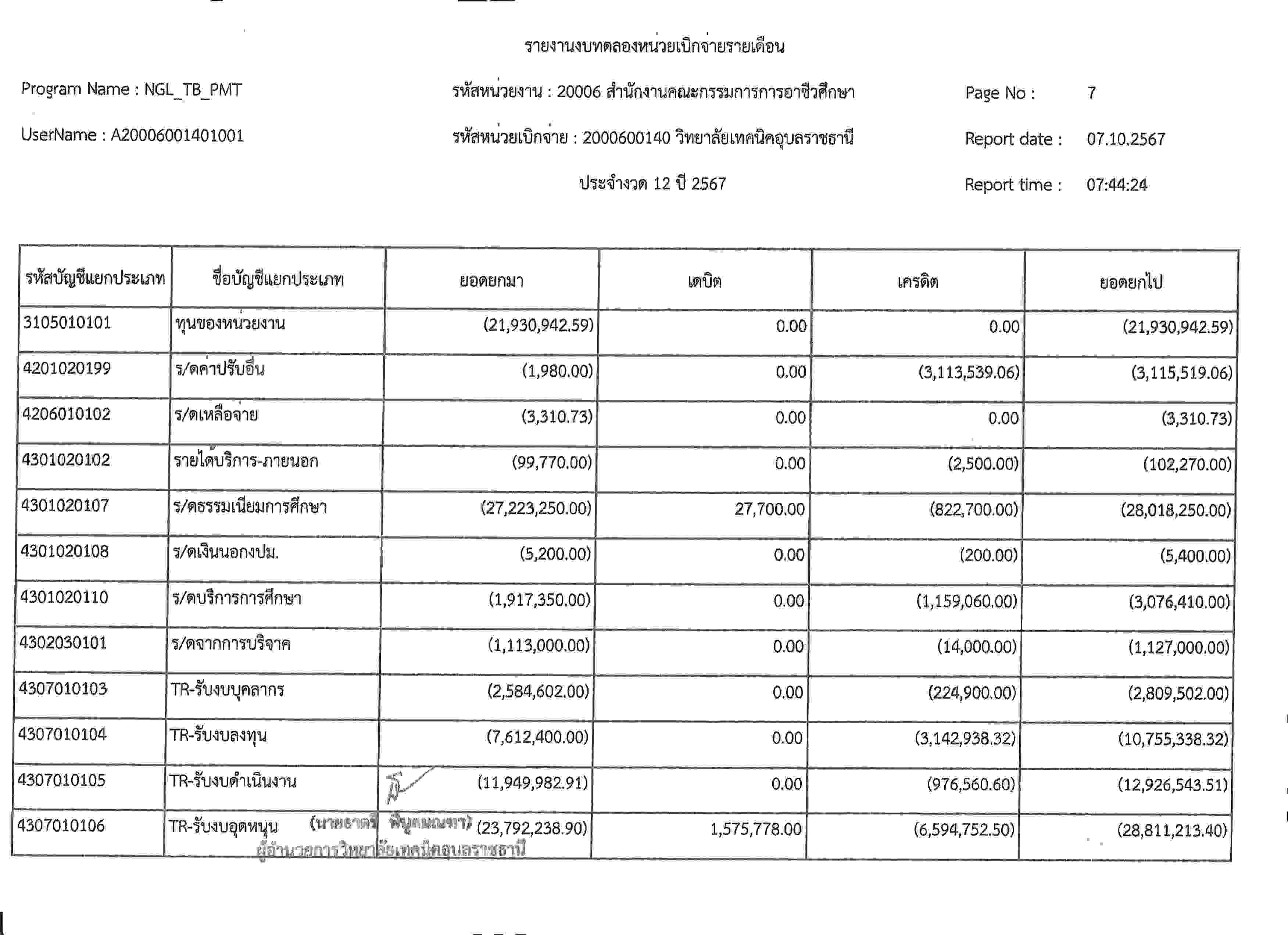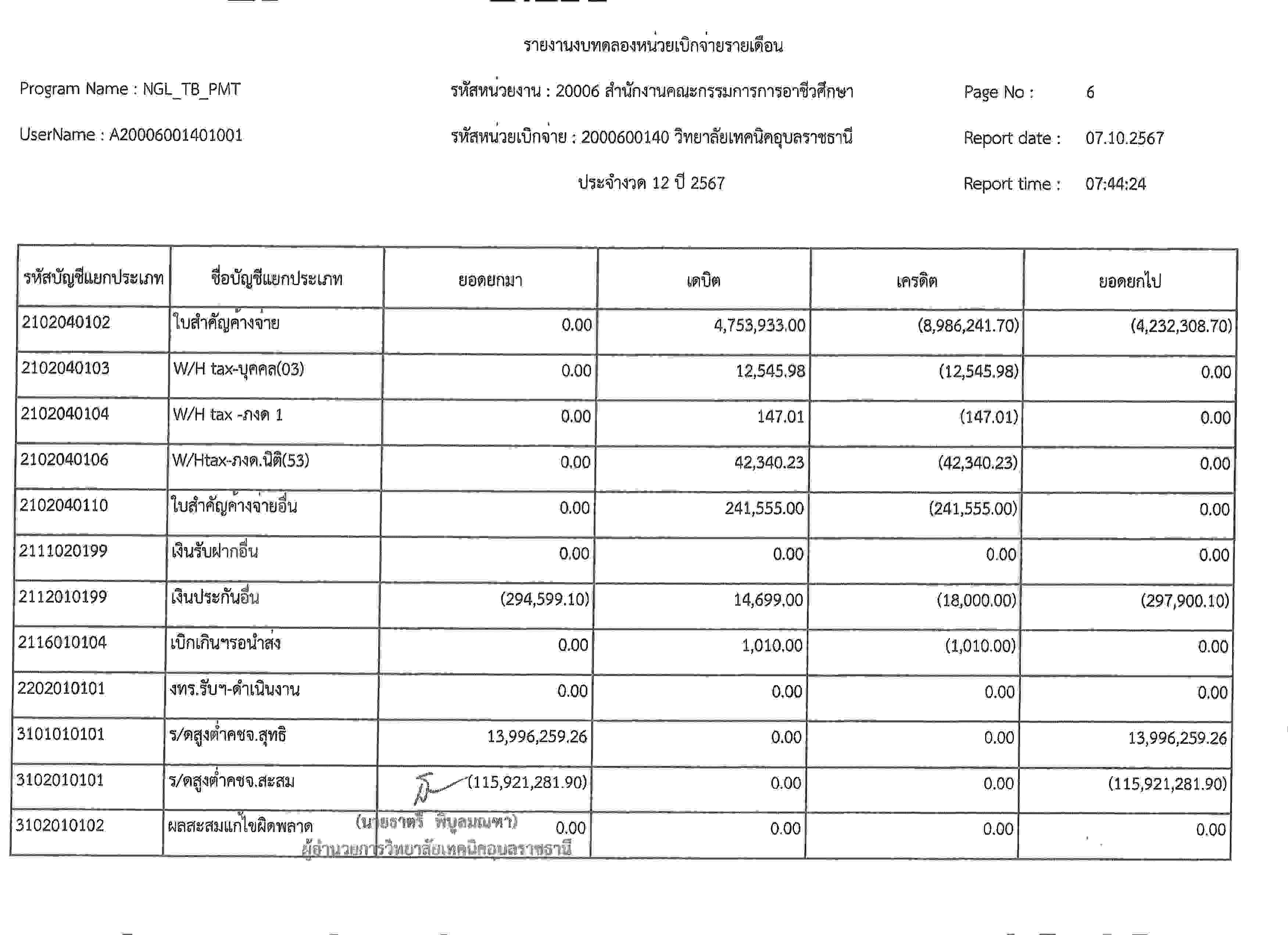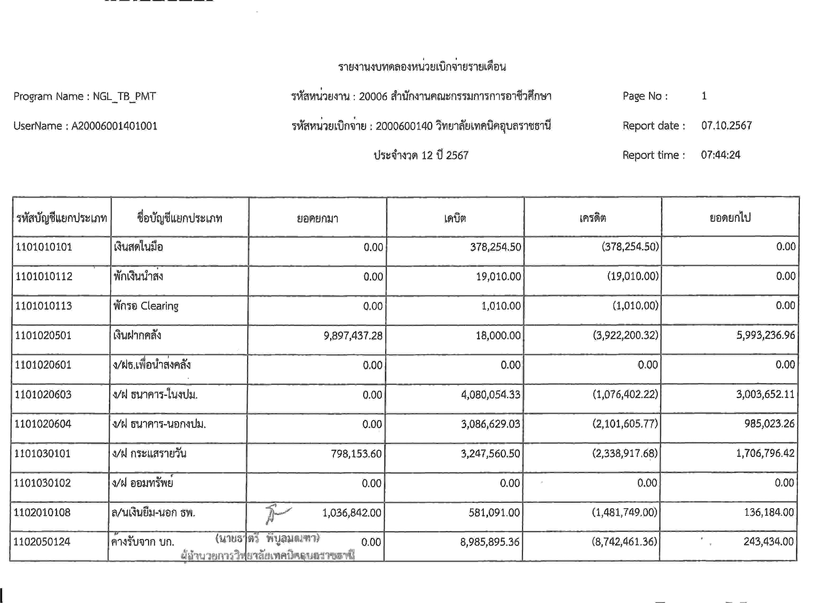 รายงานงบทดลองประจำเดือนกันยายน 2567