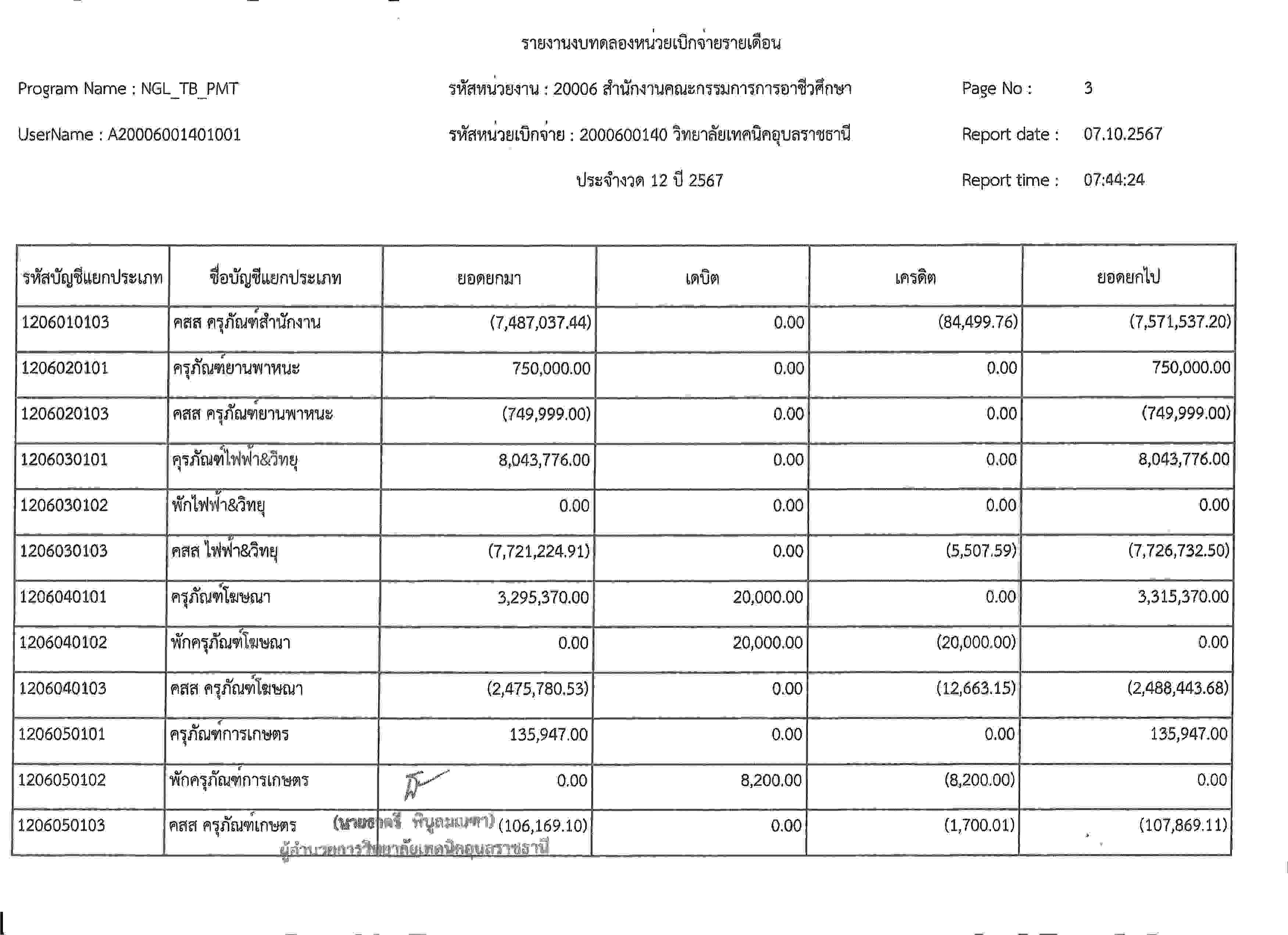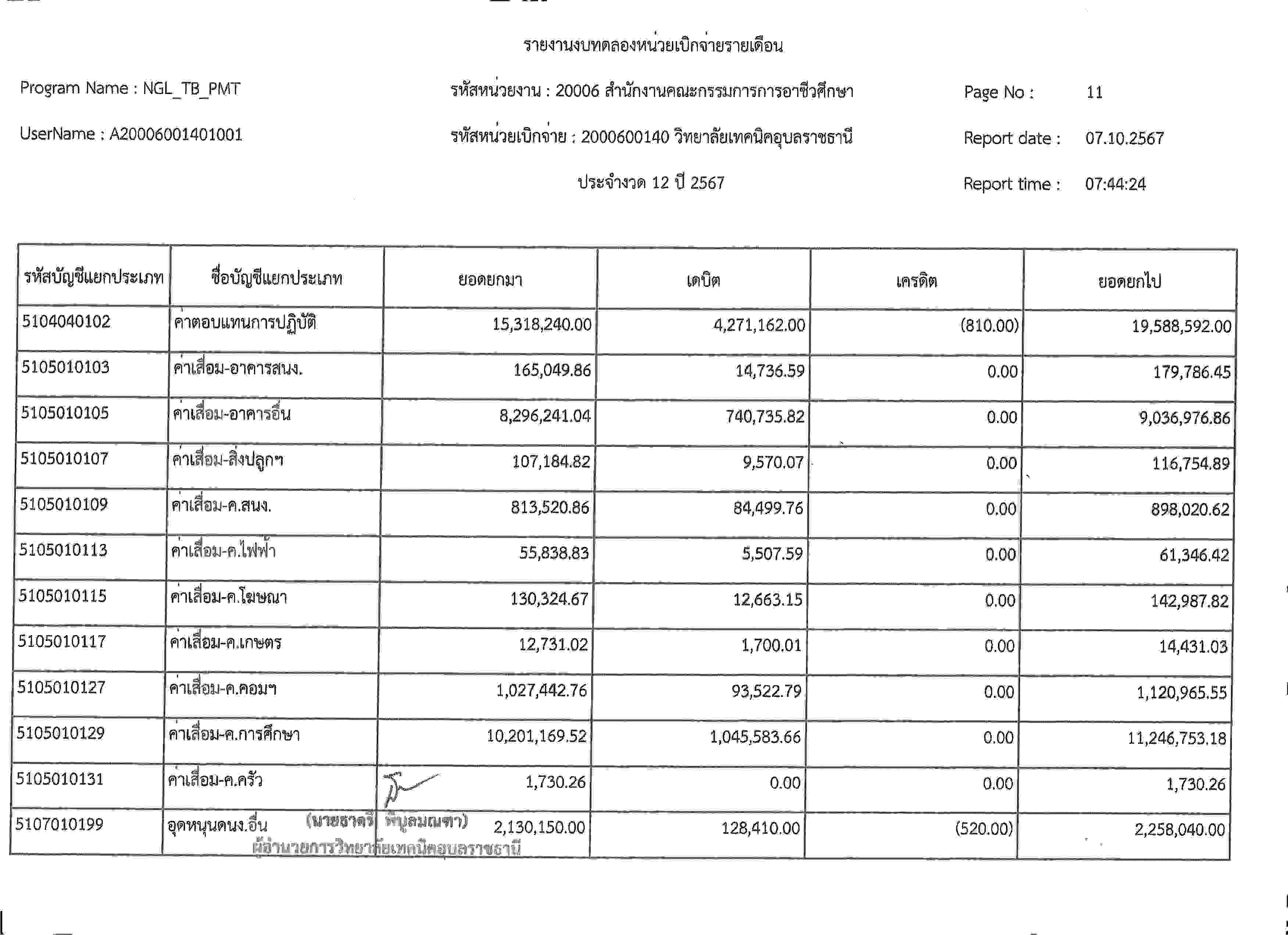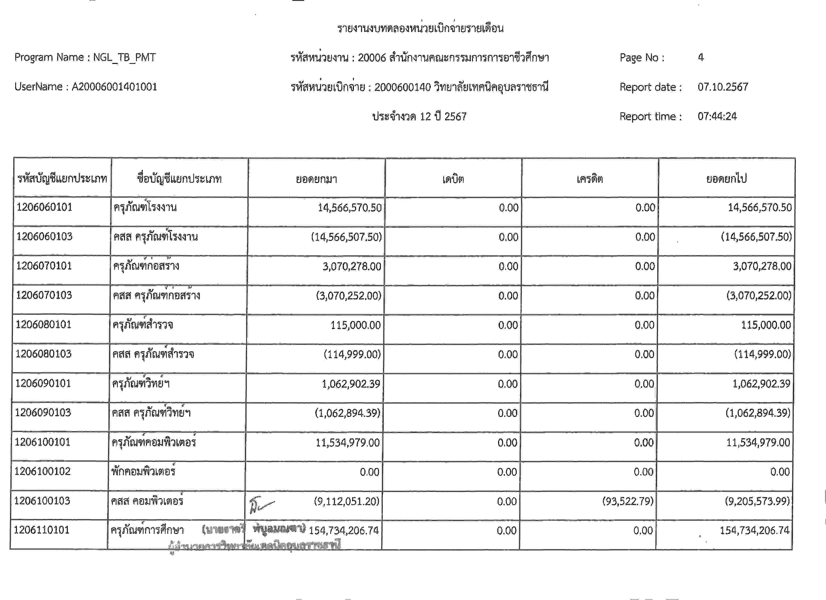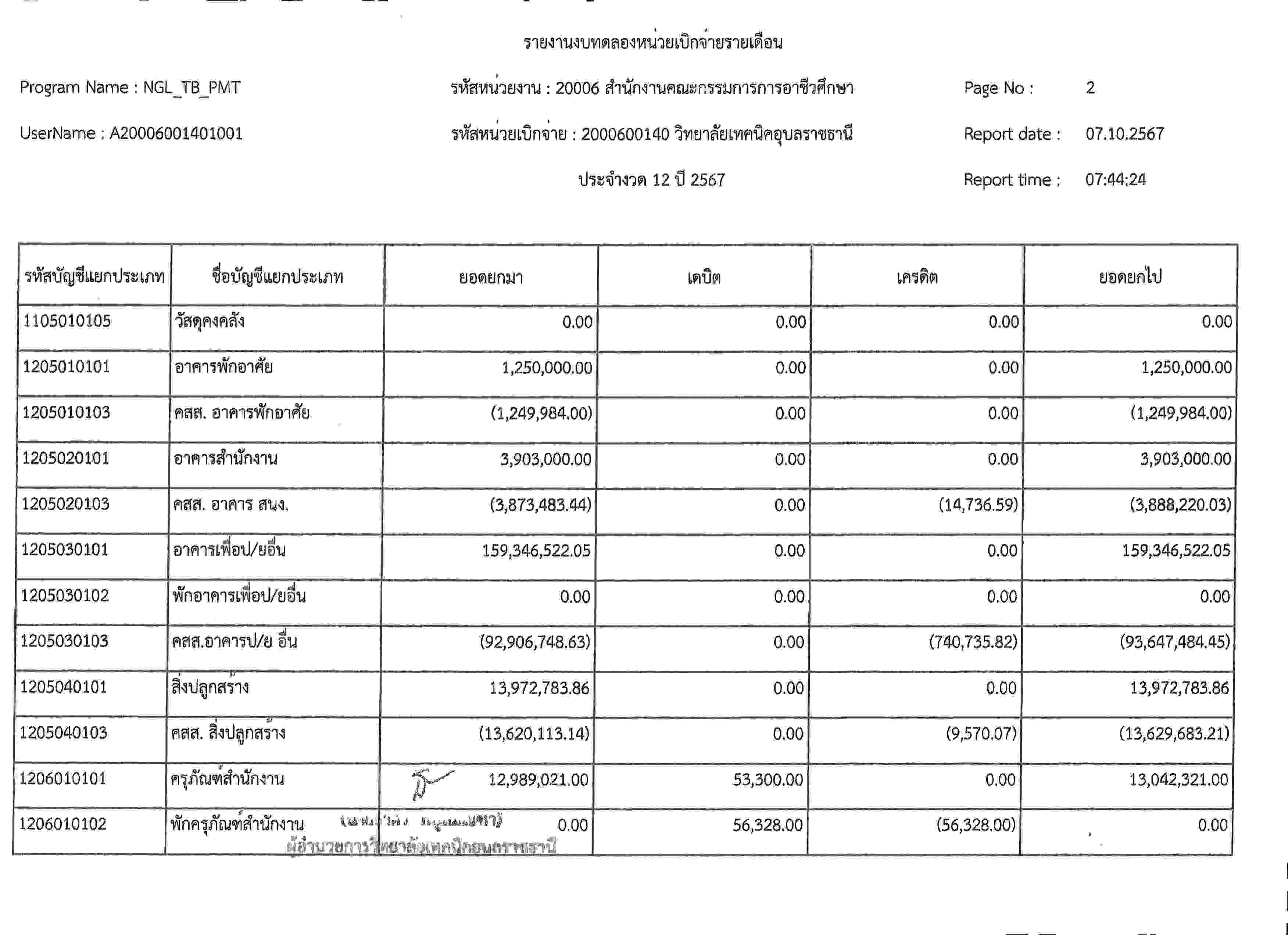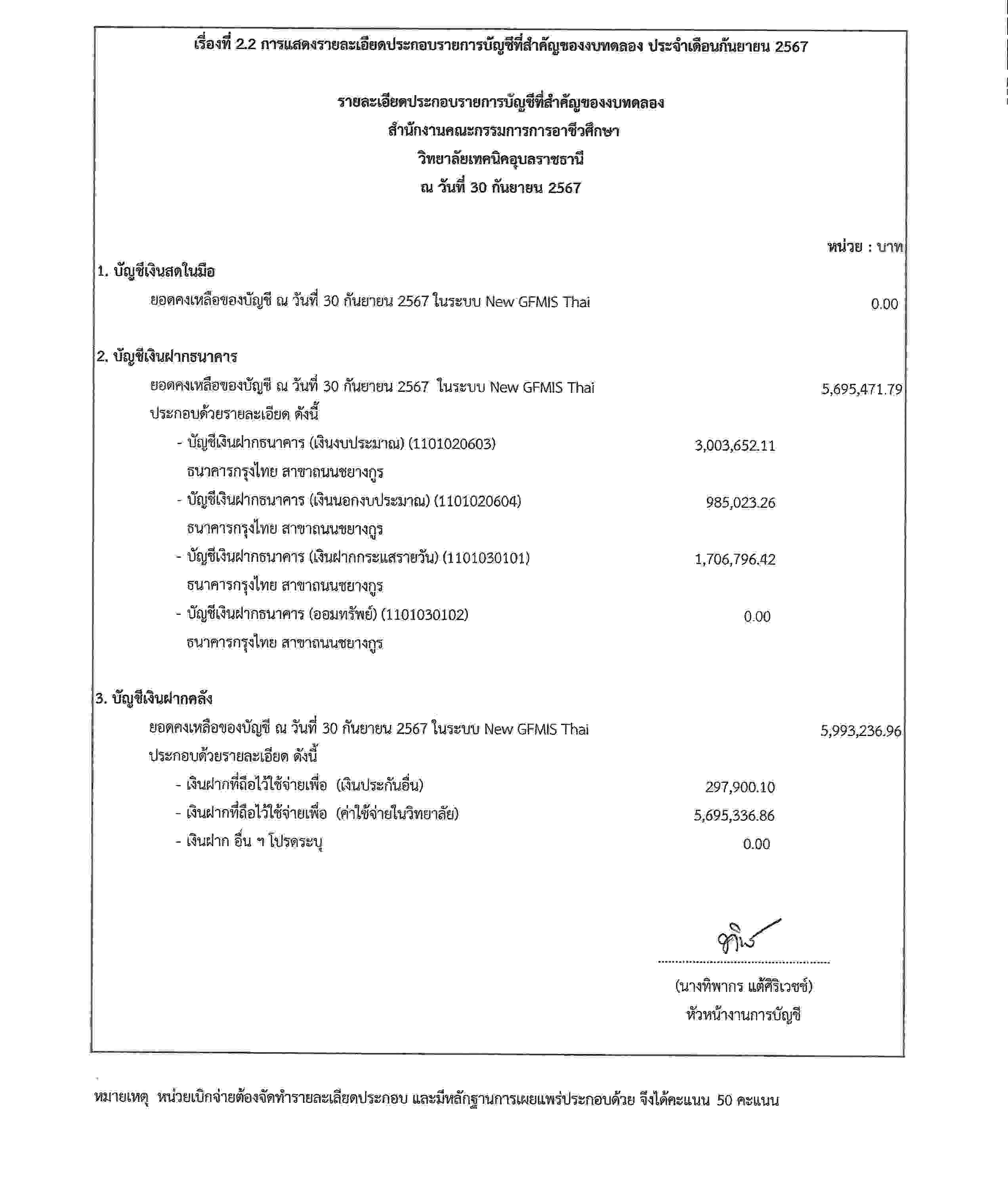 รายงานงบทดลองประจำเดือนกันยายน 2567