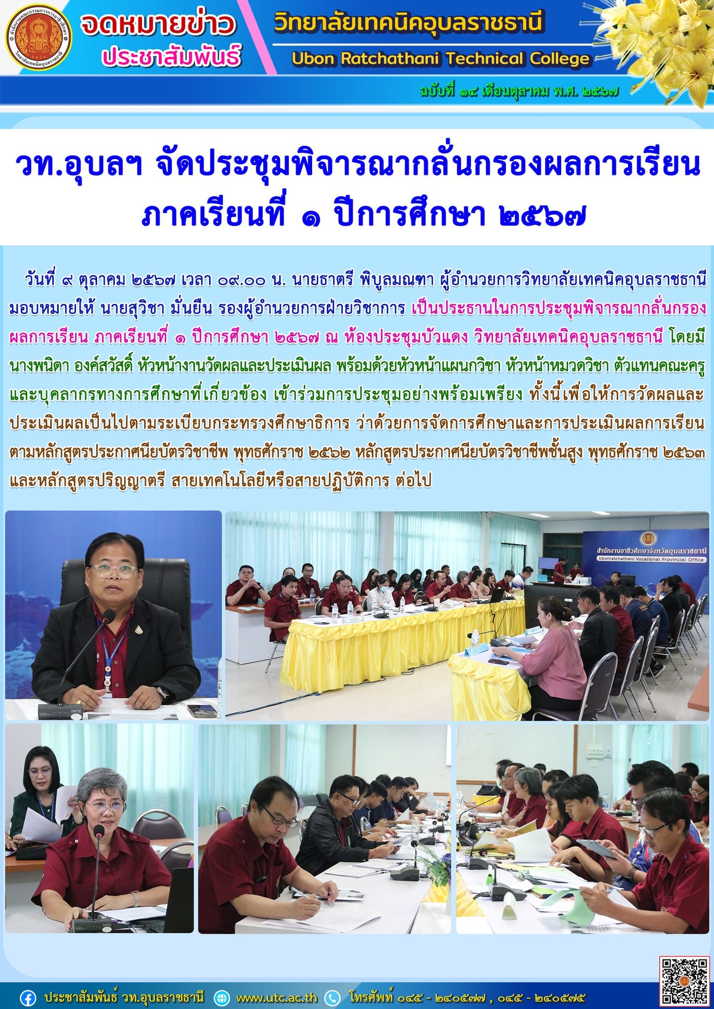 วท.อุบลฯ จัดประชุมพิจารณากลั่นกรองผลการเรียน ภาคเรียนที่ ๑ ปีการศึกษา ๒๕๖๗
