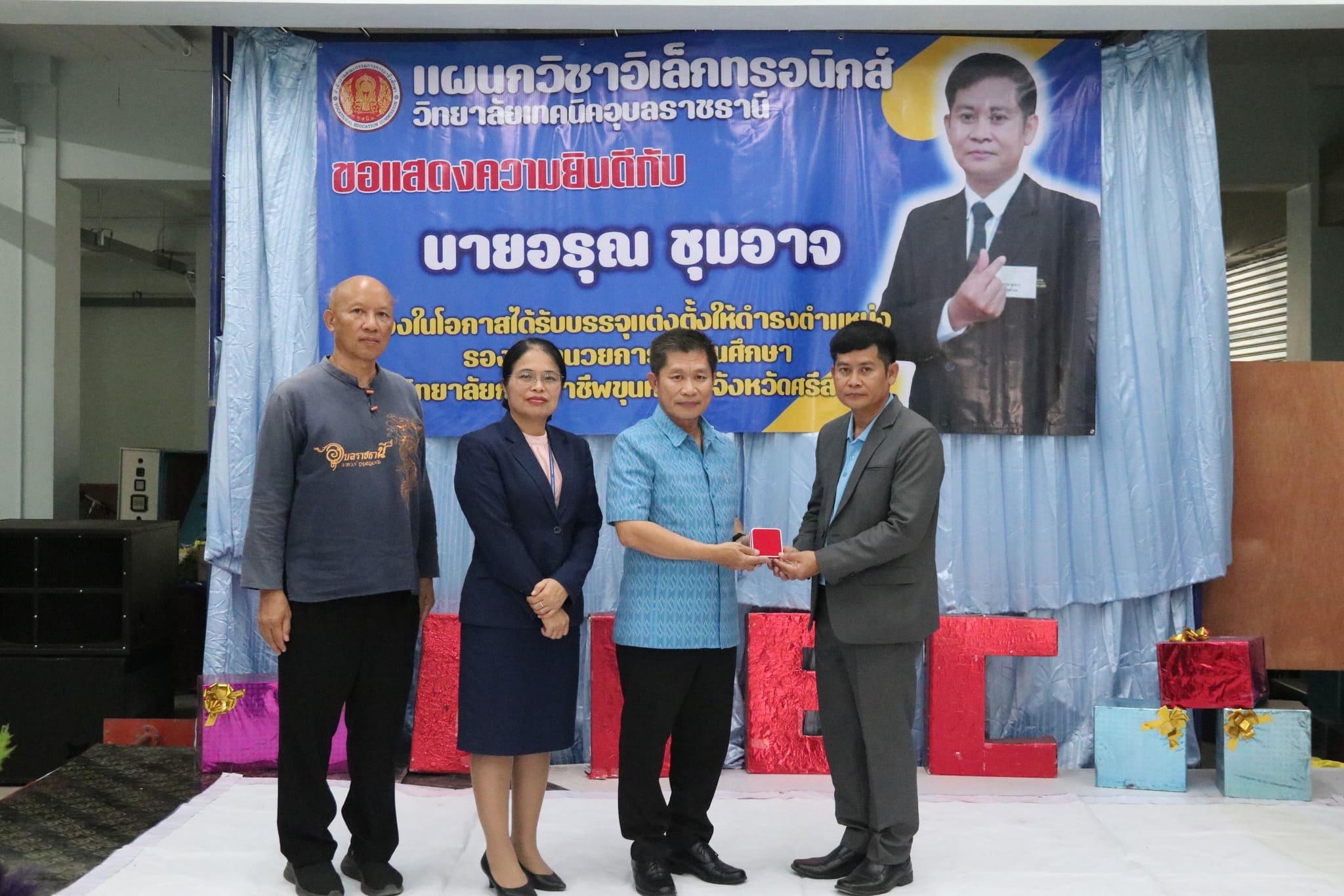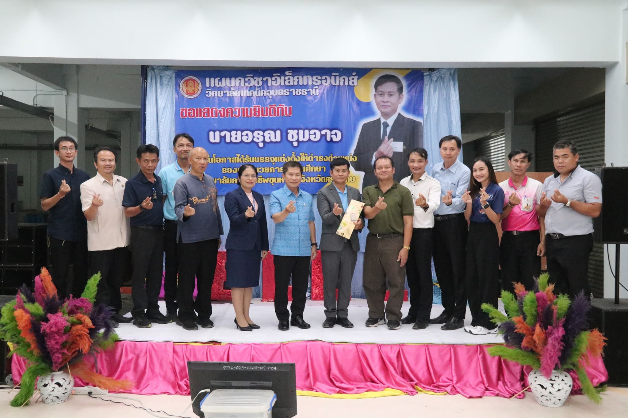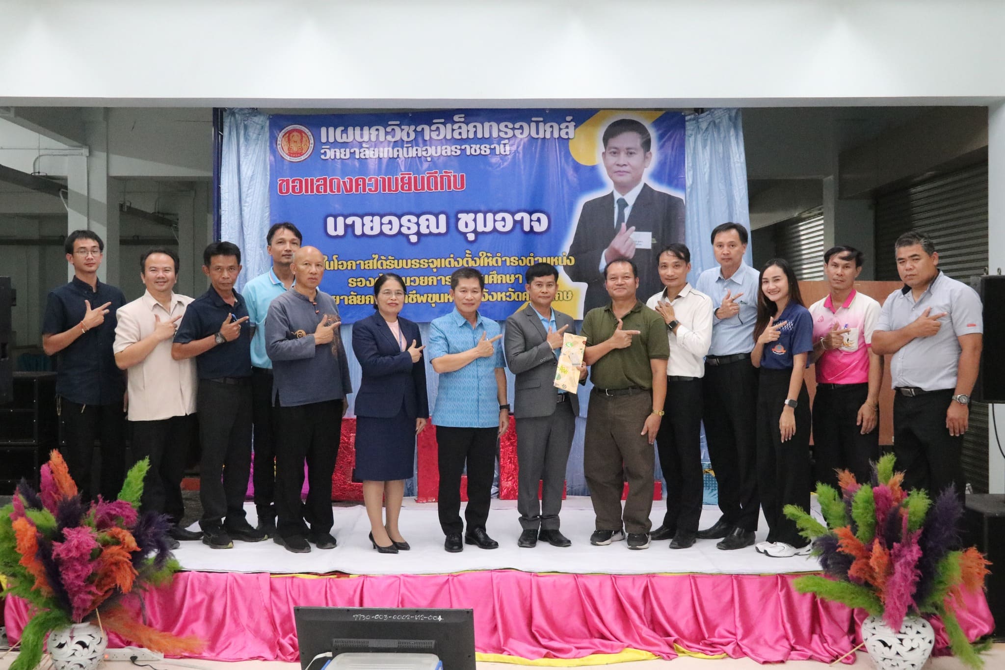 คณะผู้บริหาร วท.อุบลฯ เเสดงความยินดีกับครูเเผนกวิชาอิเล็กหรอนิกส์ ในโอกาสได้รับการบรรจุเเต่งตั้งให้ดำรงตำเเหน่ง รองผู้อำนวยการสถานศึกษา