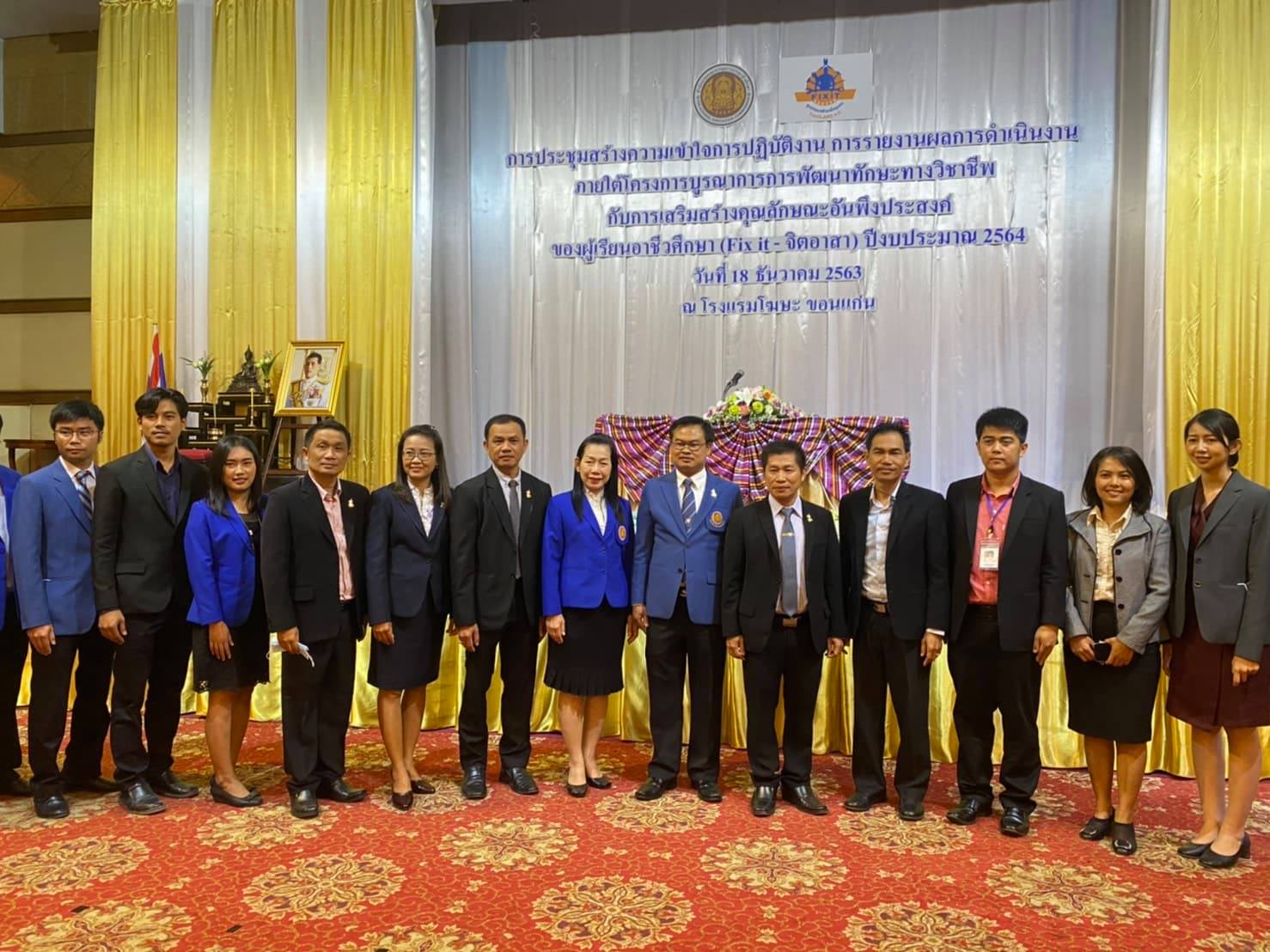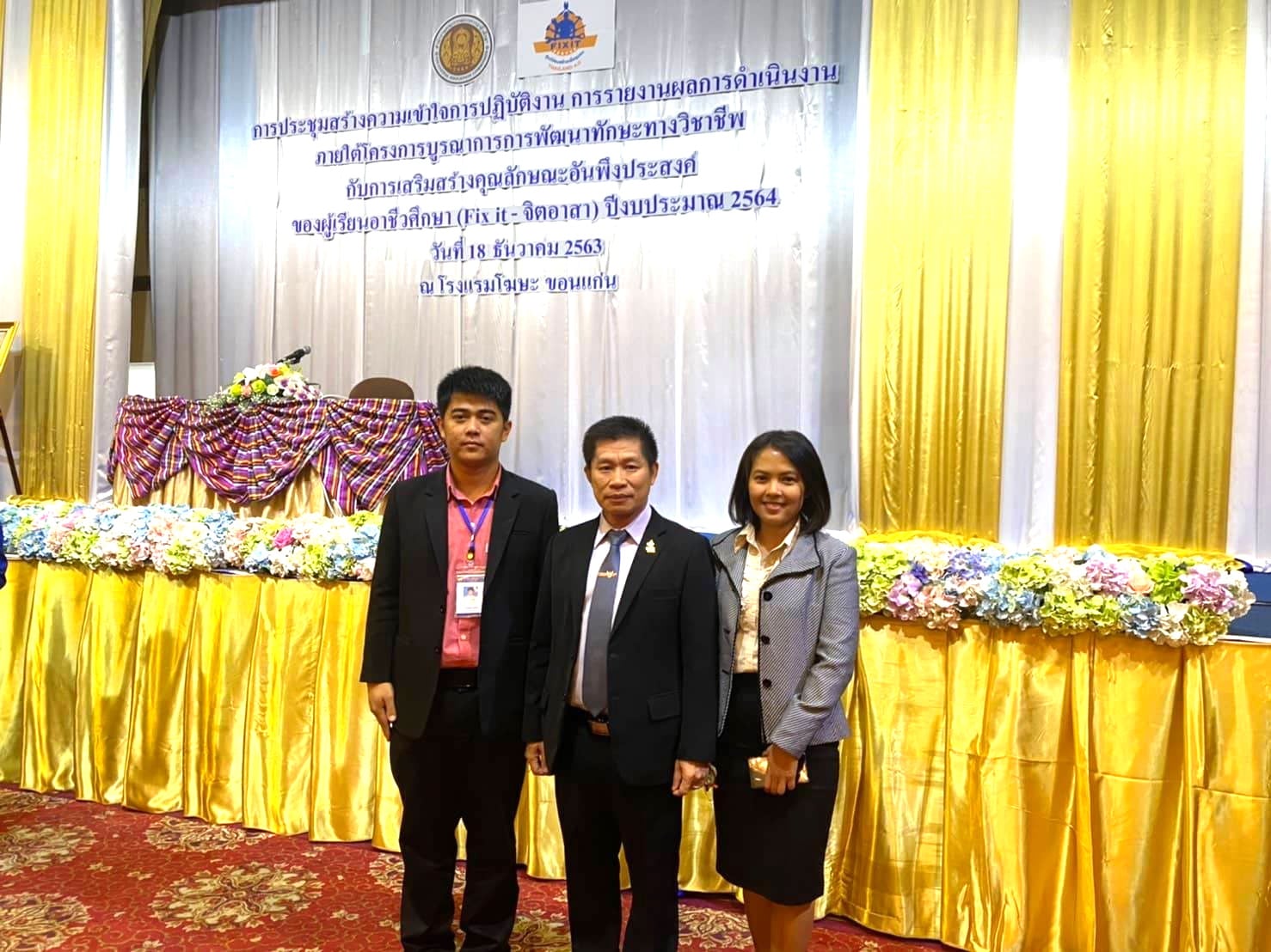นายธาตรี พิบูลมณฑา ผู้อำนวยการวิทยาลัยเทคนิคอุบลราชธานี พร้อมนายวสันต์ สุดหา หัวหน้างานโครงการพิเศษและการบริการชุมชน เข้าร่วมโครงการบูรณาการการพัฒนาทักษะของวิชาชีพกับการเสริมสร้างคุณลักษณะอันพึงประสงค์ของผู้เรียนอาชีวศึกษา (Fix it – จิตอาสา) เพื่อสร้างความเข้าใจและรับฟังการปฏิบัติงาน การรายงานผลและติดตามประเมินผลการปฏิบัติงาน การบูรณาการการพัฒนาทักษะของวิชาชีพกับการเสริมสร้างคุณลักษณะอันพึงประสงค์ของผู้เรียนอาชีวศึกษา ณ โรงแรมโฆษะ จังหวัดขอนแก่น