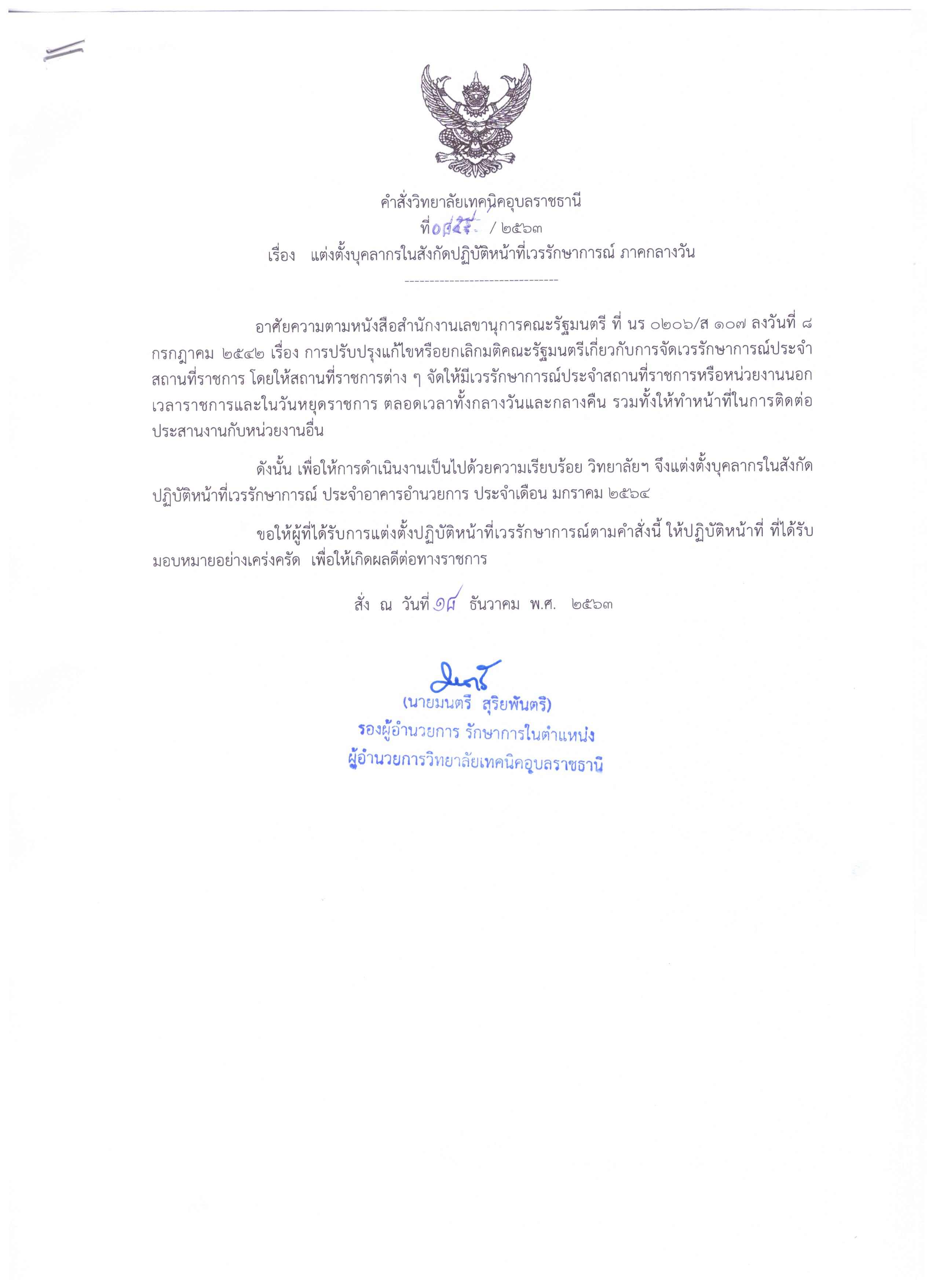 แต่งตั้งบุคคลากรในสังกัดปฏิบัติหน้าที่เวรรักษาการณ์ ภาคกลางวัน ประจำเดือนตุลาคม 2565