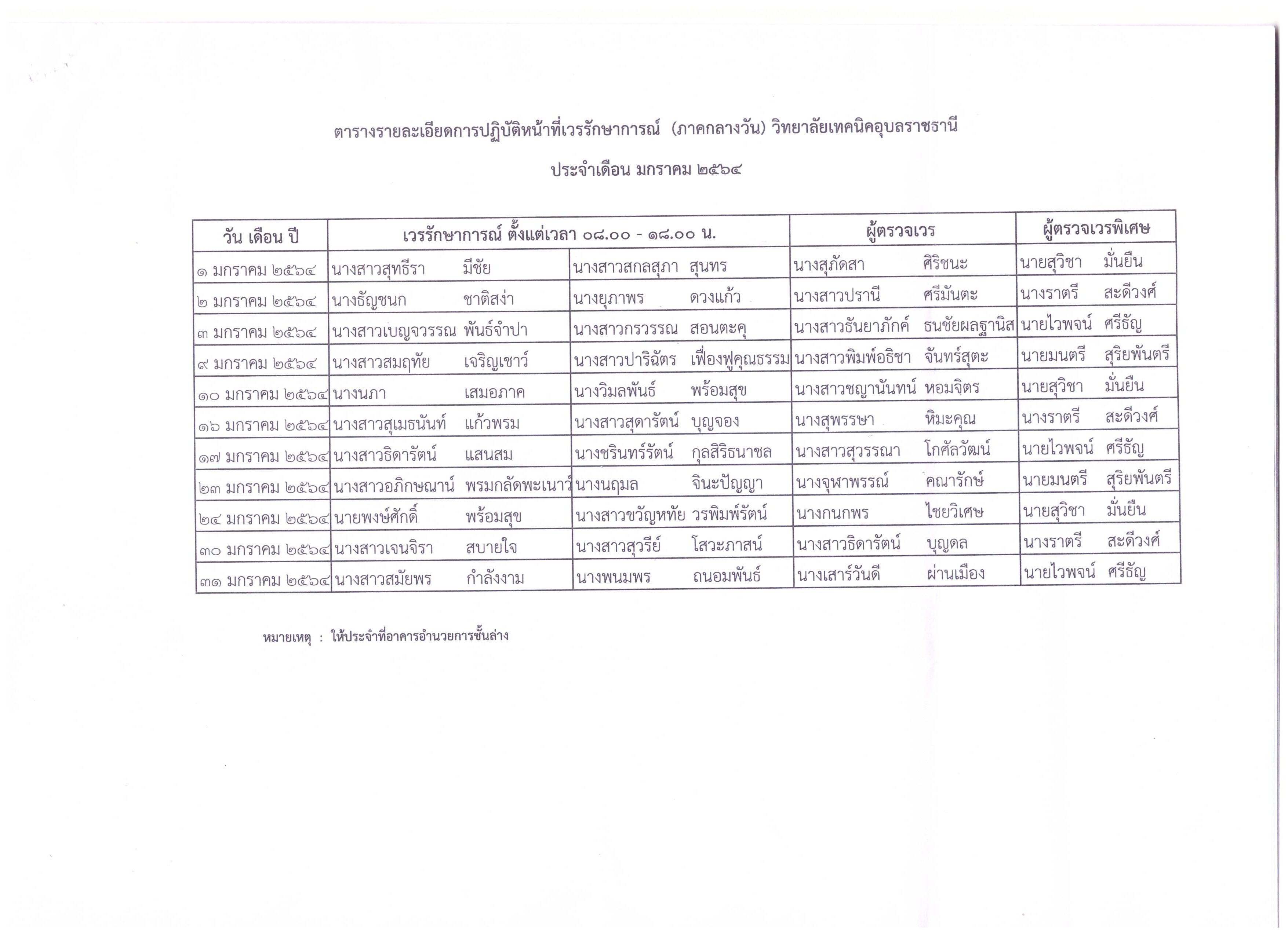 แต่งตั้งบุคคลากรในสังกัดปฏิบัติหน้าที่เวรรักษาการณ์ ภาคกลางวัน ประจำเดือนมิถุนายน 2564