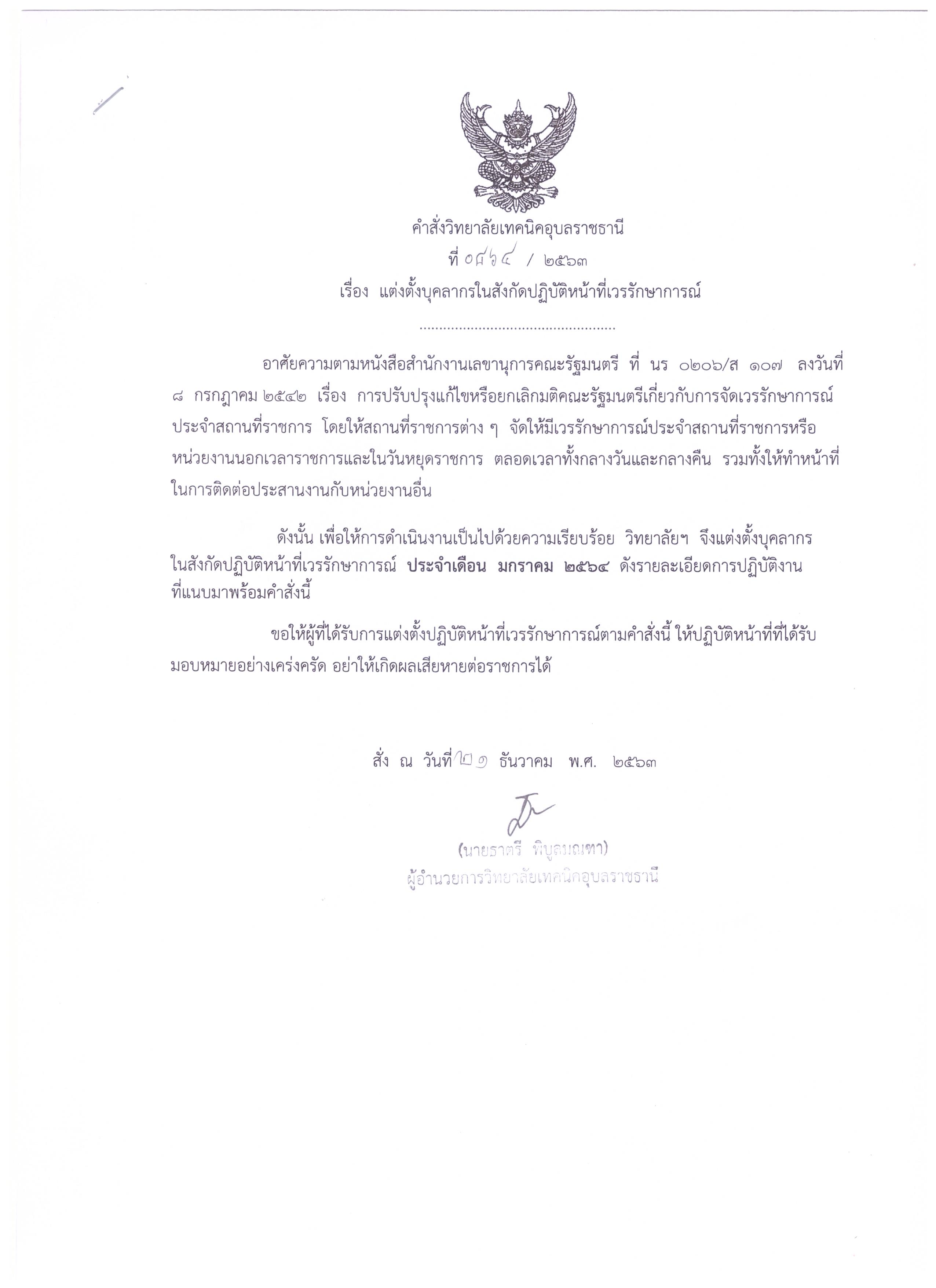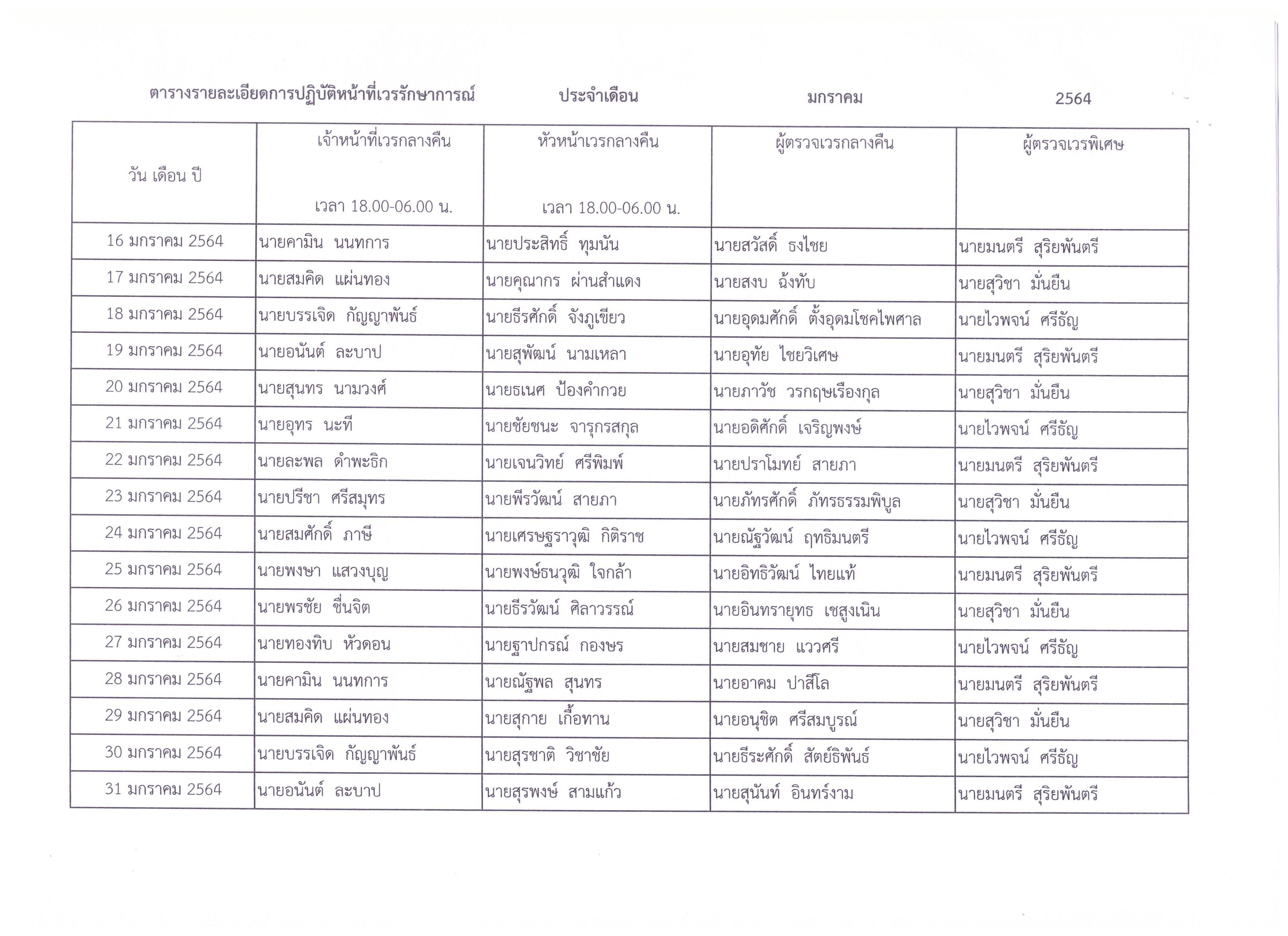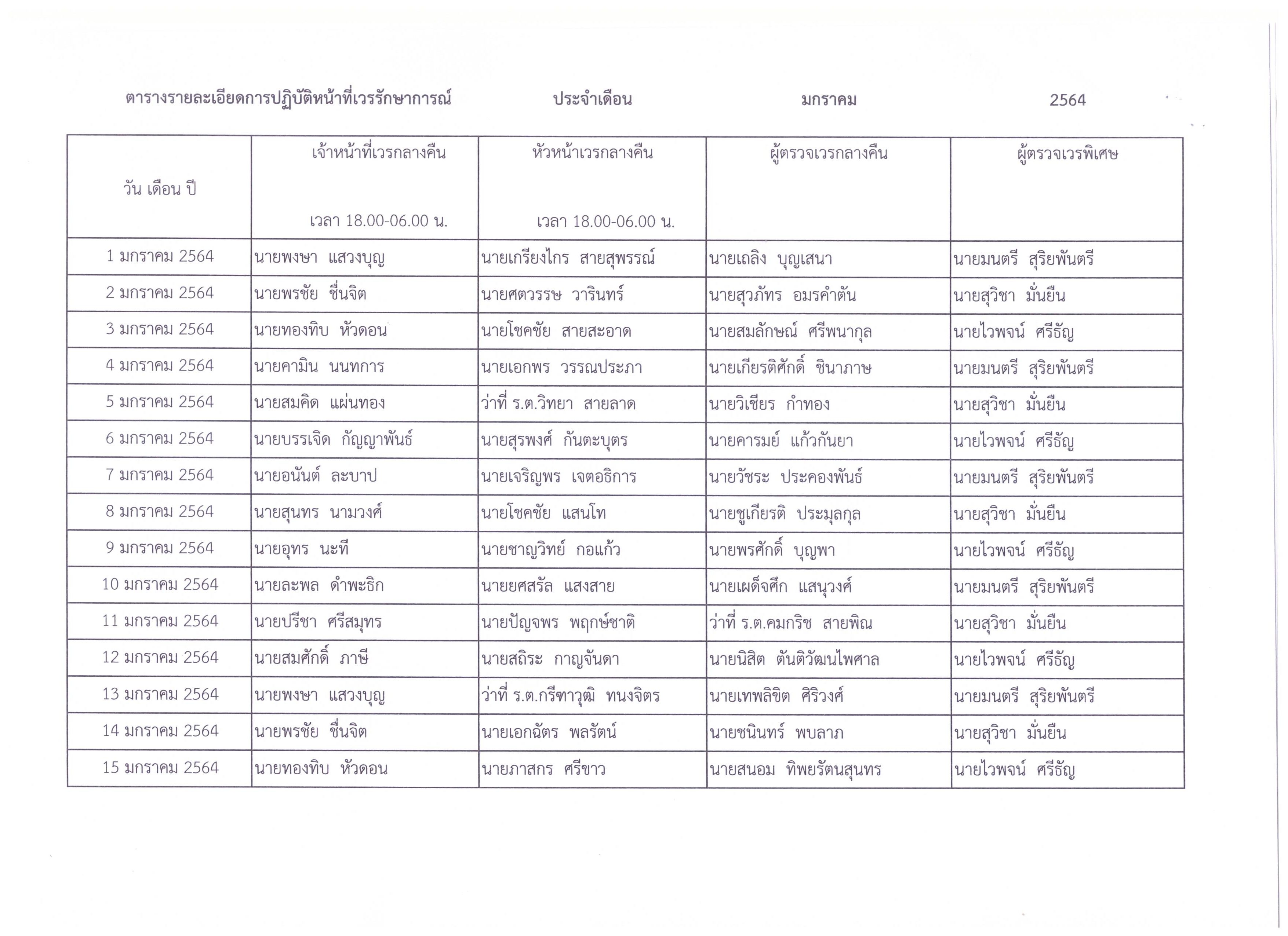 แต่งตั้งบุคคลากรในสังกัดปฏิบัติหน้าที่เวรรักษาการณ์ ภาคกลางวัน ประจำเดือนธันวาคม 2564