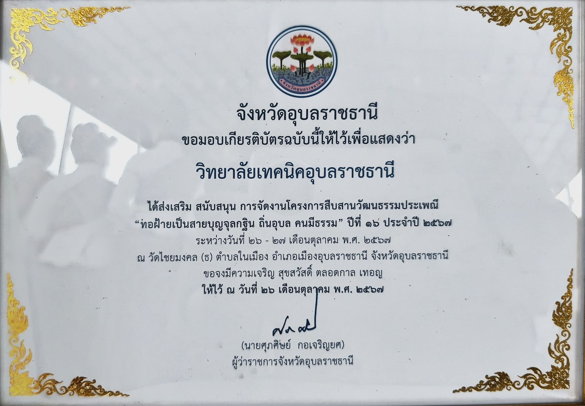 จังหวัดอุบลราชธานี ร่วมกับ คณะวิศวกรรมศาสตร์ สถาบันเทคโนโลยีปทุมวัน (เพิ่มเติม…)