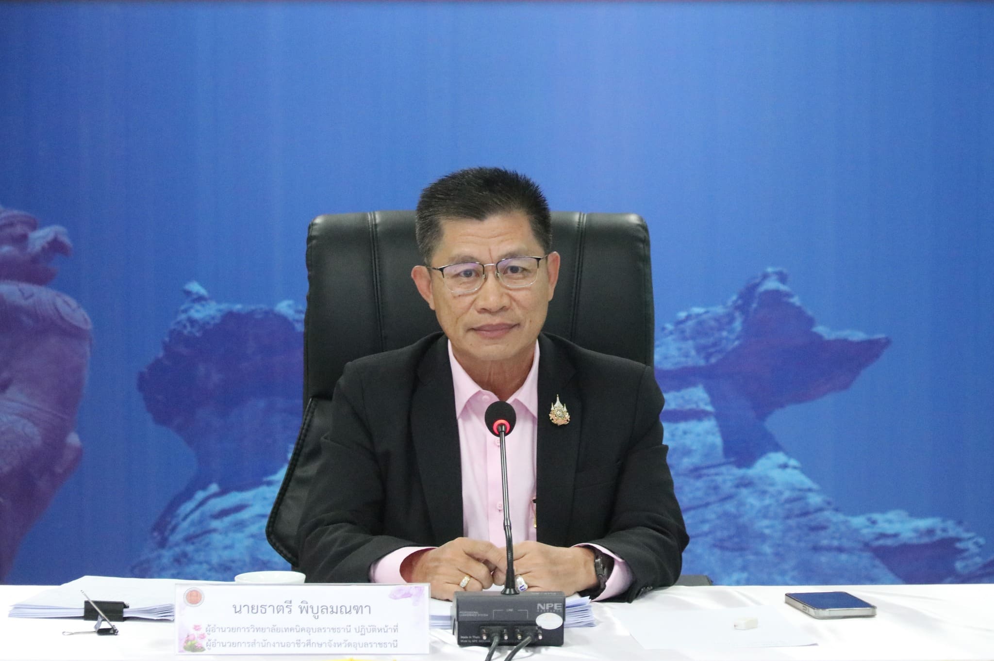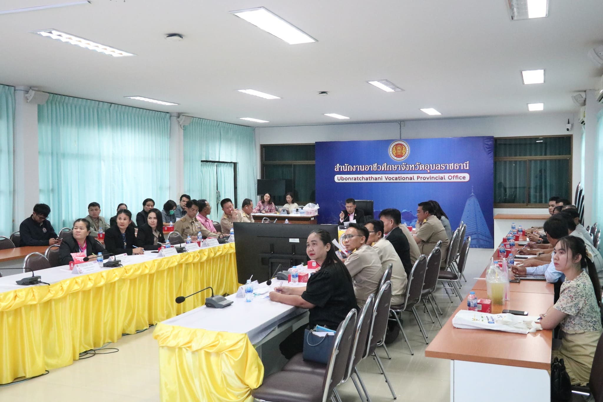 วันที่ ๒๙ ตุลาคม ๒๕๖๗ เวลา ๑๓.๐๐ น. นายธาตรี พิบูลมณฑา ผู้อำนวยการวิทยาลัยเทคนิคอุบลราชธานี ปฏิบัติหน้าที่ ผู้อำนวยการสำนักงานอาชีวศึกษาจังหวัดอุบลราชธานี ให้เกียรติเป็นประธานในการประชุมชี้แจงข้อกำหนด หลักเกณฑ์ การประกวดสิ่งประดิษฐ์ของคนรุ่นใหม่ ประจำปีการศึกษา ๒๕๖๗ ระดับกลุ่มจังหวัด กลุ่มจังหวัดที่ ๕ ณ ห้องประชุมบัวแดง วิทยาลัยเทคนิคอุบลราชธานี โดยมี นางราตรี สะดีวงศ์ รองผู้อำนวยการฝ่ายแผนงานและความร่วมมือ ปฏิบัติหน้าที่ เลขานุการสำนักงานอาชีวศึกษาจังหวัดอุบลราชธานี นางสาวสายฝน สาระผล รองผู้อำนวยการฝ่ายบริหารทรัพยากร ดร.อาคม ปาสีโล หัวหน้างานวิจัยพัฒนานวัตกรรมและสิ่งประดิษฐ์ นางณชิตา เถาว์โท หัวหน้าสำนักงานอาชีวศึกษาจังหวัดอุบลราชธานี พร้อมด้วย รองผู้อำนวยการฝ่ายแผนงานและความร่วมมือ หัวหน้างานวิจัยพัฒนานวัตกรรมและสิ่งประดิษฐ์ ของสถานศึกษาในสังกัดสำนักงานอาชีวศึกษาจังหวัดอุบลราชธานี เข้าร่วมประชุมอย่างพร้อมเพรียง ทั้งนี้เพื่อให้การดำเนินงานเป็นไปด้วยความเรียบร้อยต่อไป