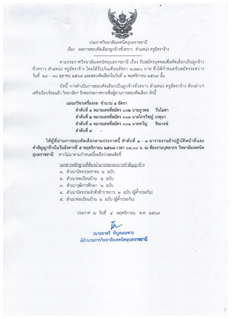 ประกาศวิทยาลัยเทคนิคอุบลราชธานี