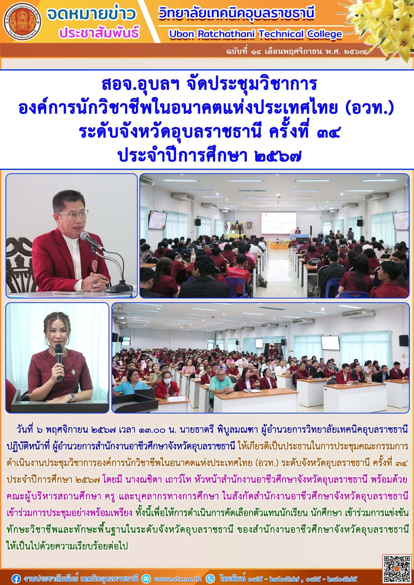 วท.อุบลฯ การประชุมวิชาการองค์การนักวิชาชีพในอนาคตแห่งประเทศไทย (อวท.) ระดับจังหวัดอุบลราชธานี ครั้งที่ ๓๔ประจำปีการศึกษา ๒๕๖๗