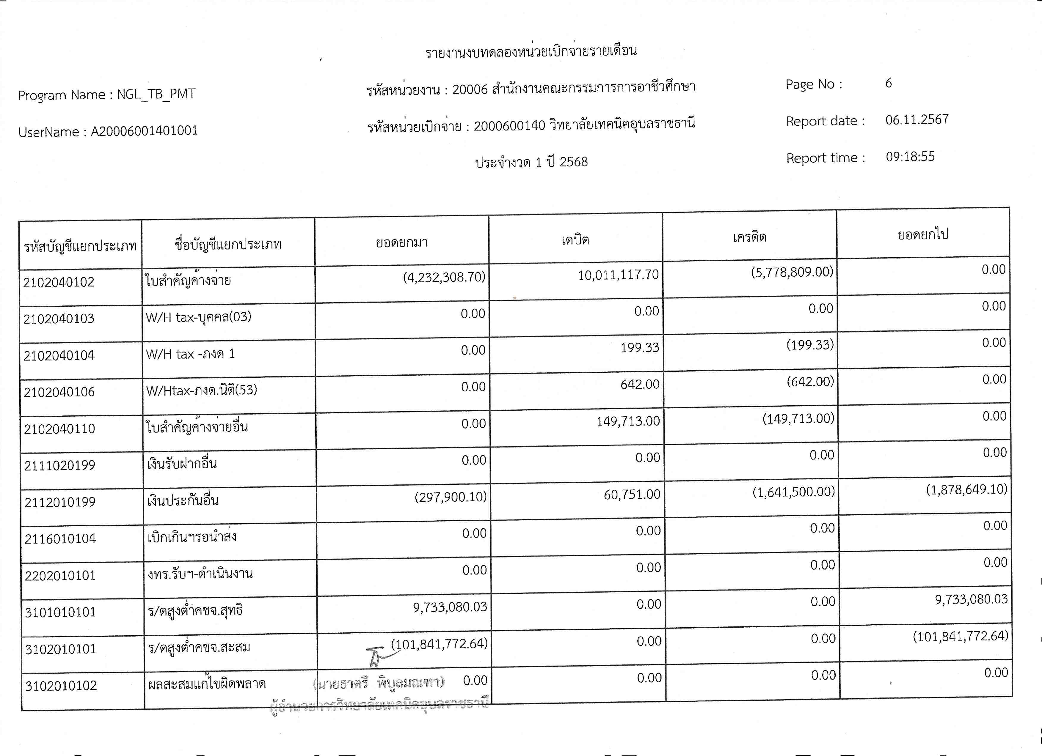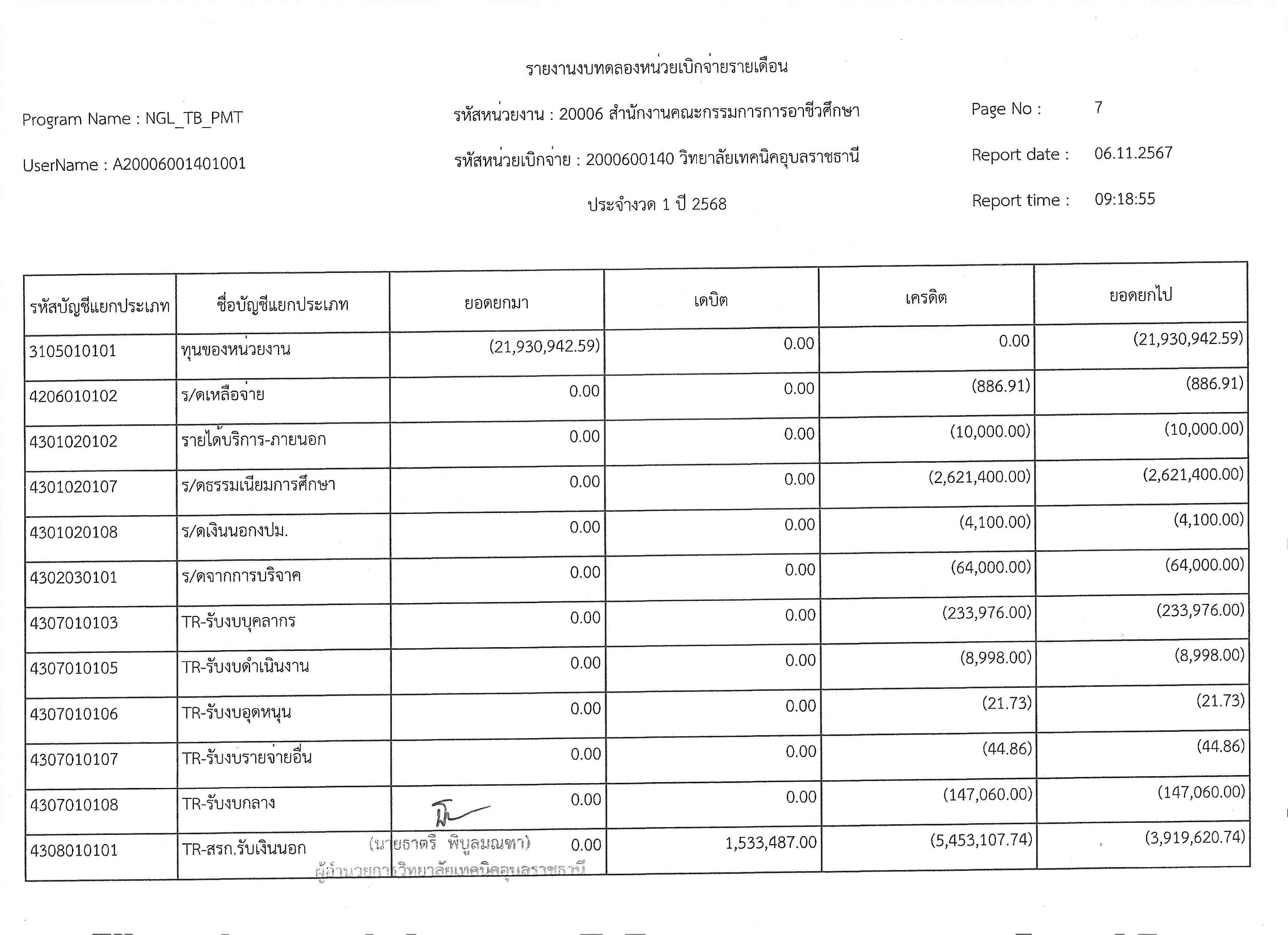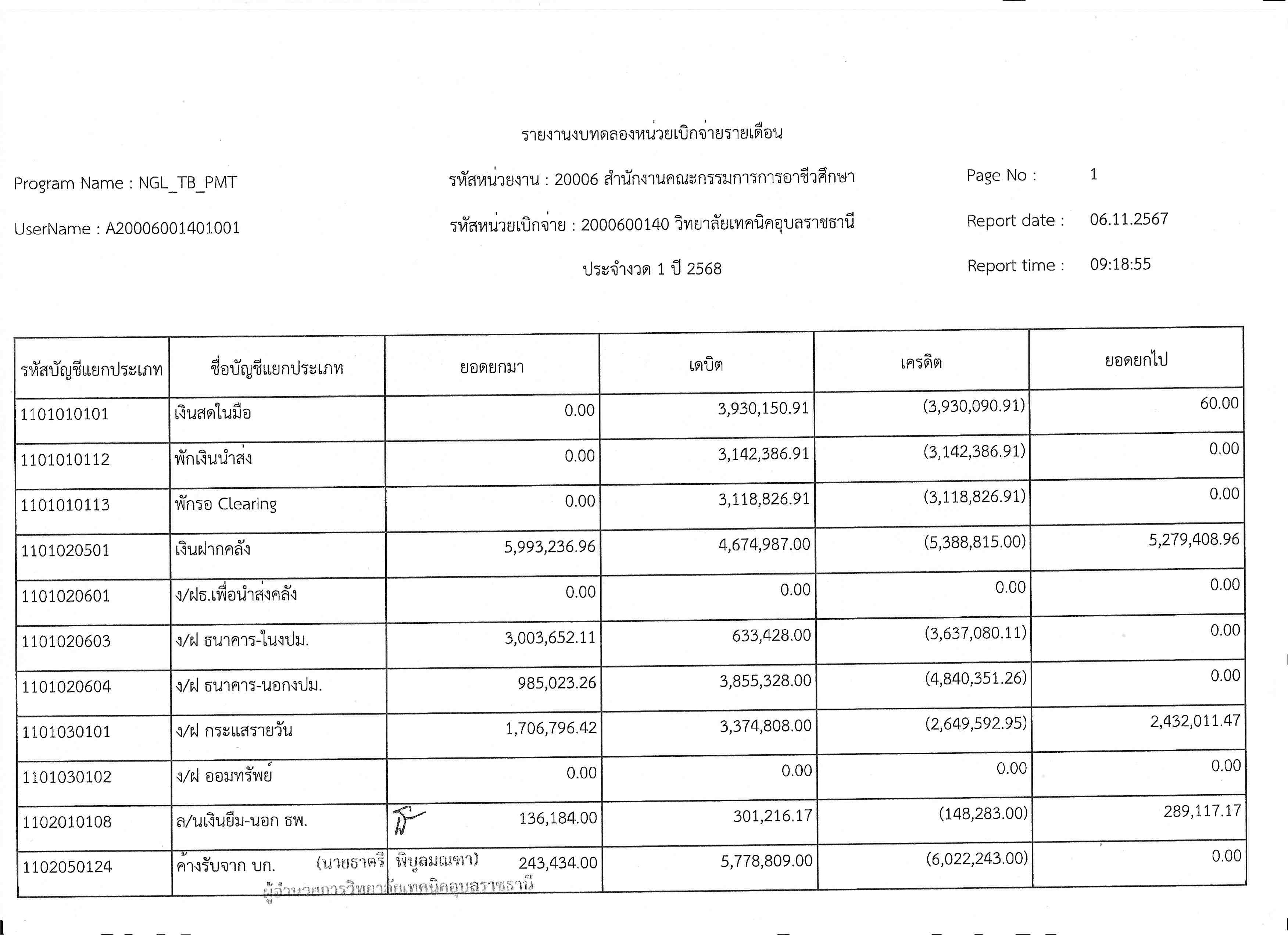 รายงานงบทดลองประจำเดือนตุลาคม 2567
