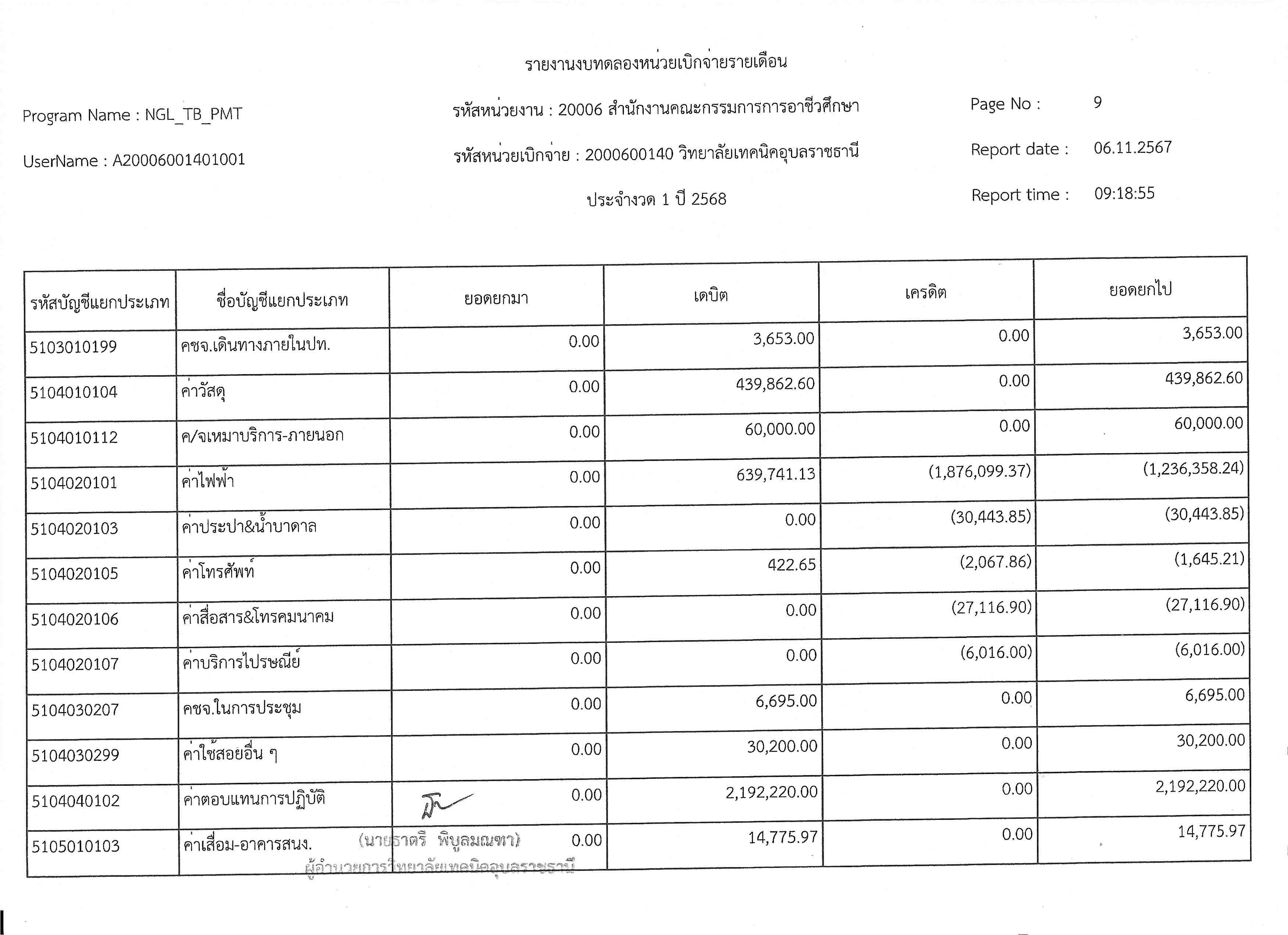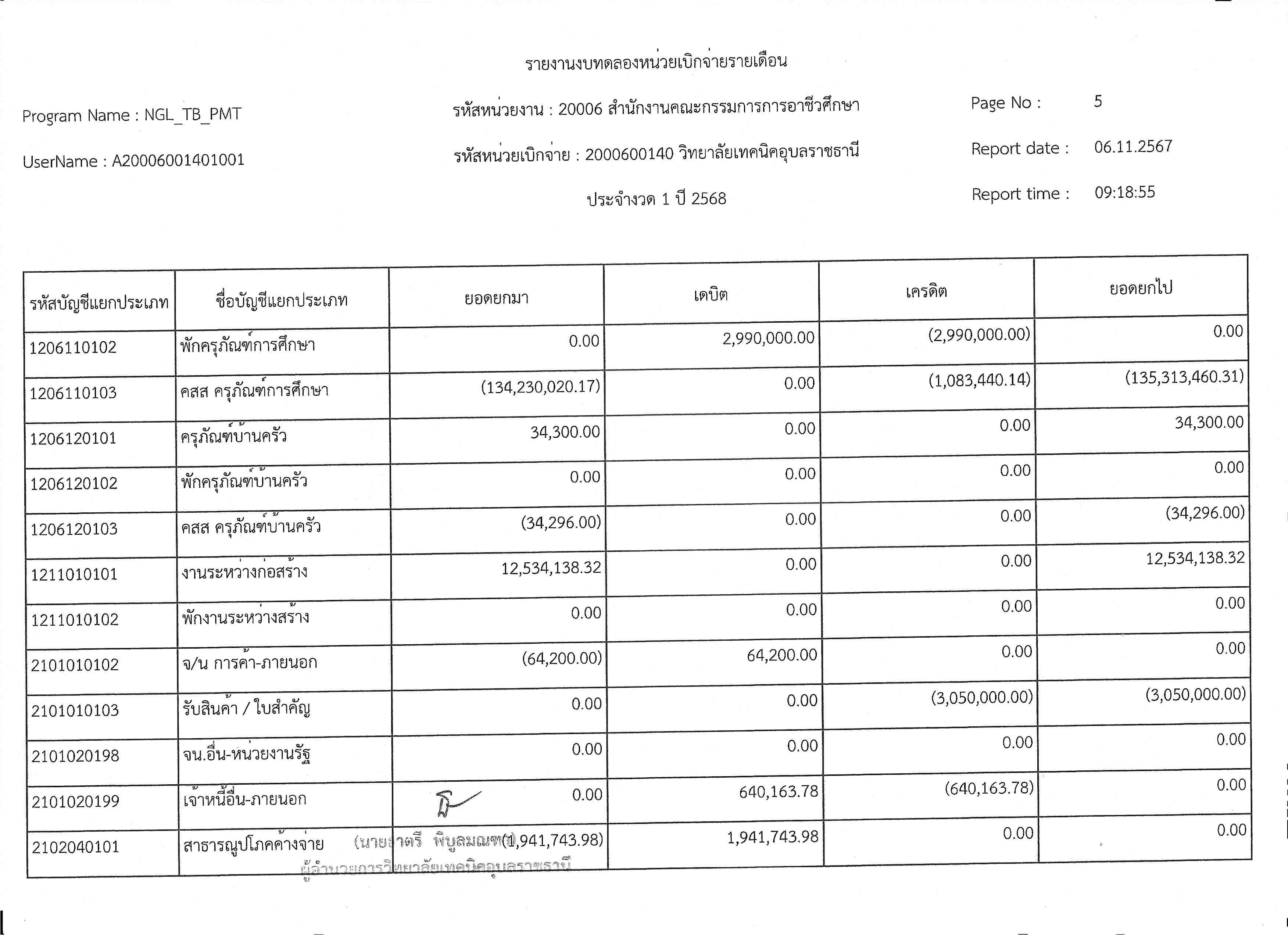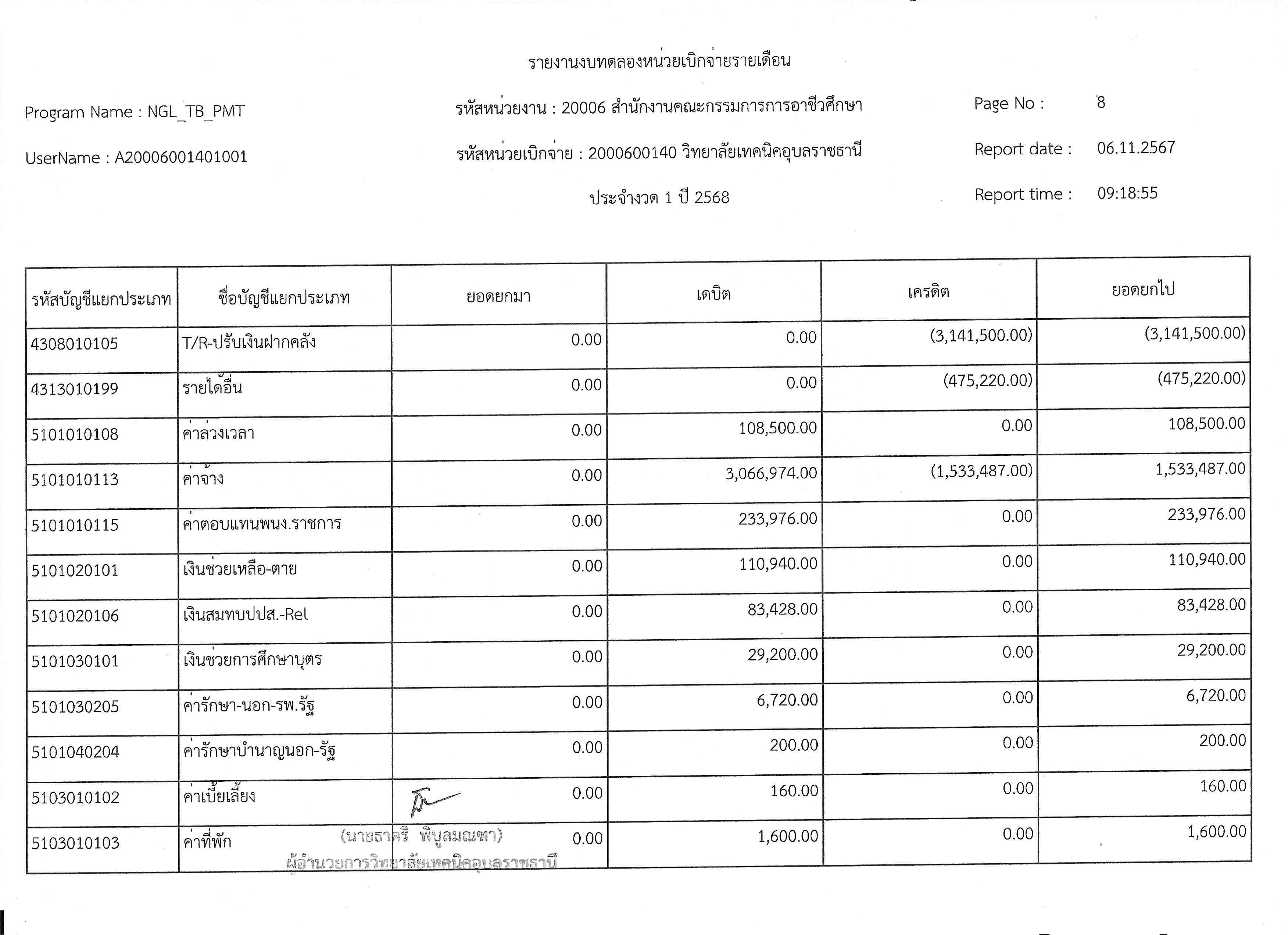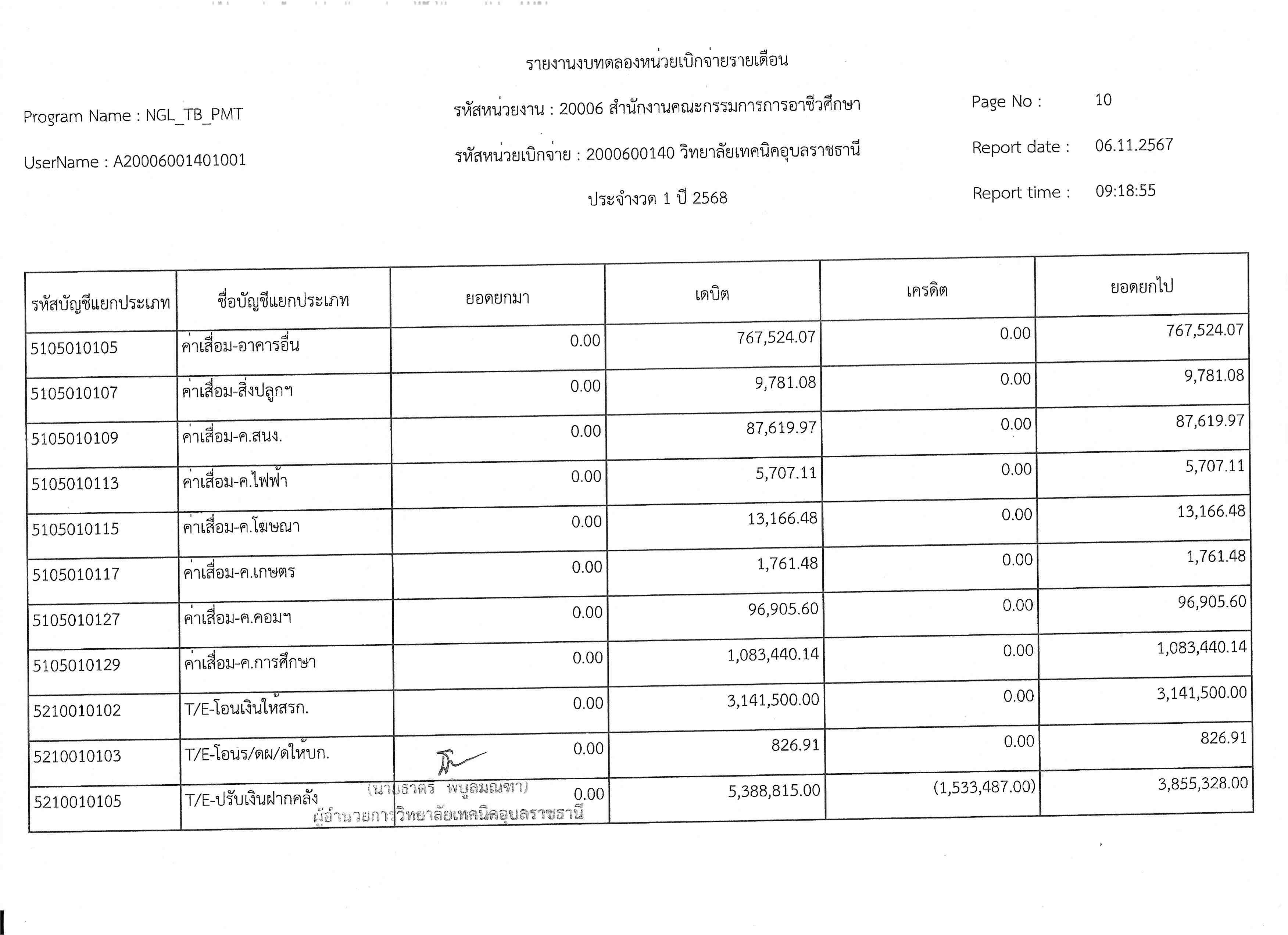 รายงานงบทดลองประจำเดือนตุลาคม 2567