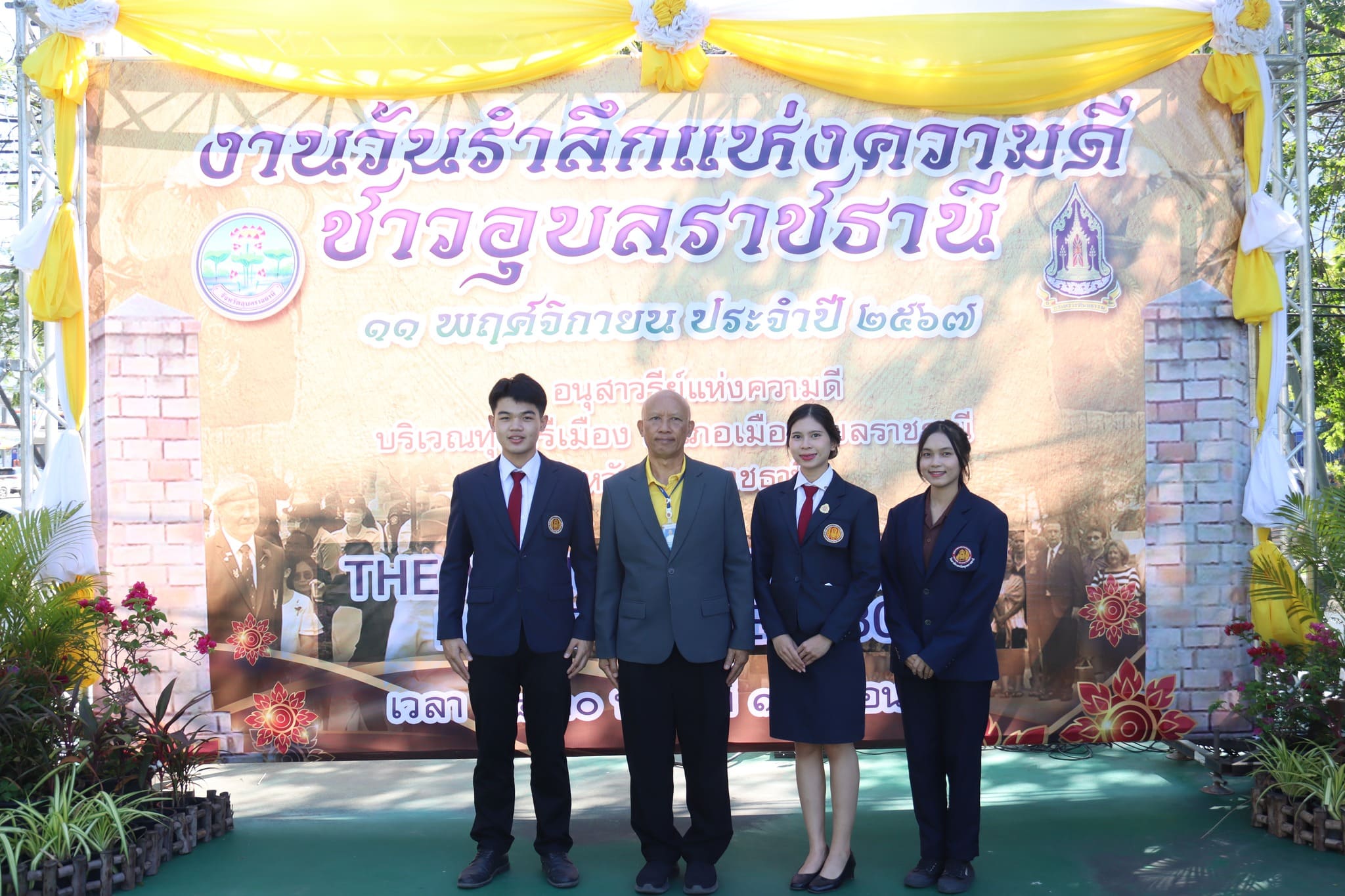 วันที่ ๑๑ พฤศจิกายน ๒๕๖๗ เวลา ๐๙.๐๐ น.นายธาตรี พิบูลมณฑา ผู้อำนวยการวิทยาลัยเทคนิคอุบลราชธานี มอบหมายให้ นายไวพจน์ ศรีธัญ รองผู้อำนวยการฝ่ายพัฒนา กิจการนักเรียนนักศึกษา นำตัวแทนนักศึกษา องค์การนักวิชาชีพในอนาคตแห่งประเทศไทย วิทยาลัยเทคนิคอุบลราชธานี ได้แก่ ๑.นายกิตติภพ รัตนวงศ์ ระดับชั้น ปวช.๓ แผนกวิชาโยธา ๒.นางสาวฐิติชญา ครั้งพิบูลย์ ระดับชั้น ปวช.๓ แผนกวิชาโยธา และ๓.นางสาวอัญชลี สุทธิรัตน์ ระดับชั้น ปวส.๒ แผนกเทคโนโลยีคอมพิวเตอร์ เข้าร่วมงานวันรำลึกแห่งความดีชาวอุบลราชธานี ๑๑ พฤศจิกายน ประจำปี ๒๕๖๗ ณ อนุสาวรีย์แห่งความดีชาวอุบลราชธานี ทุ่งศรีเมือง ตำบลในเมือง อำเภอเมืองอุบลราชธานี จังหวัดอุบลราชธานี ในการนี้ได้รับเกียรติจาก นายภูษิต น้อยโสภากุล รองผู้ว่าราชการจังหวัดอุบลราชธานี เป็นประธานในพิธี ทั้งนี้มีหัวหน้าส่วนราชการ และหน่วยงานต่างๆ เข้าร่วมงานอย่างพร้อมเพรียง
