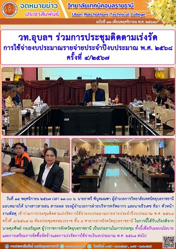 FacebookTwitterLineวันที่ ๖ กรกฎาคม ๒๕๖๗ เวลา ๐๙.๐๐ น. นายธาตรี พิบูลมณฑา ผู้อำนวยการวิทยาลัยเทคนิคอุบลราชธานี มอบหมายให้ นายไวพจน์ ศรีธัญ รองผู้อำนวยการฝ่ายพัฒนากิจการนักเรียนนักศึกษา เป็นประธาน (เพิ่มเติม…)