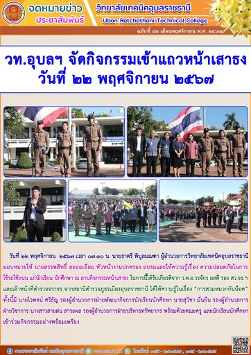 วท.อุบลฯ จัดกิจกรรมเข้าแถวหน้าเสาธง วันที่ 22 พฤศจิกายน 2567