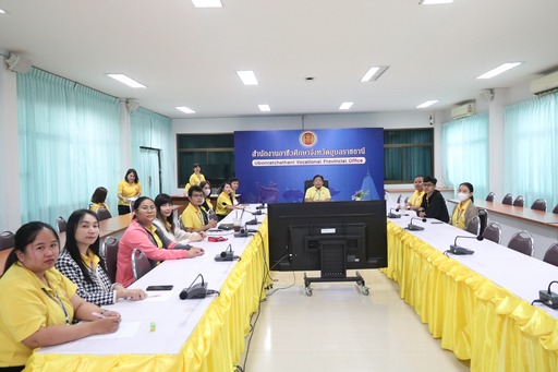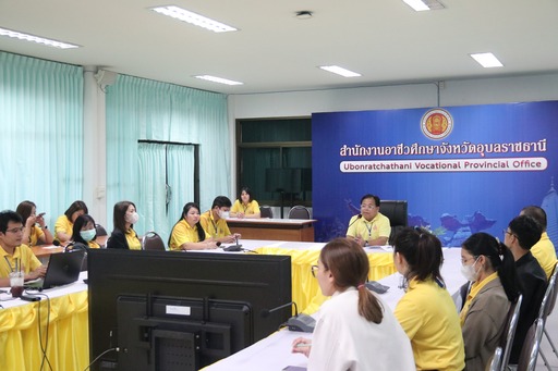 วันที่ ๒๕ พฤศจิกายน ๒๕๖๗ เวลา ๑๓.๐๐ น. นายธาตรี พิบูลมณฑา ผู้อำนวยการวิทยาลัยเทคนิคอุบลราชธานีปฏิบัติหน้าที่ ผู้อำนวยการสำนักงานอาชีวศึกษาจังหวัดอุบลราชธานี มอบหมายให้ นายสุวิชา มั่นยืน รองผู้อำนวยการฝ่ายวิชาการ เป็นประธานการประชุมคณะกรรมการรับลงทะเบียน การประกวดสิ่งประดิษฐ์ของคนรุ่นใหม่ ประจำปีการศึกษา ๒๕๖๗ ระดับกลุ่มจังหวัด กลุ่มจังหวัดที่ ๕ ณ ห้องประชุมบัวแดง วิทยาลัยเทคนิคอุบลราชธานี โดยมีนางณชิตา เถาว์โท หัวหน้าสำนักงานอาชีวศึกษาจังหวัดอุบลราชธานี นายชวินทร์ พลหาญ กรรมการและผู้ช่วยเลขานุการคณะกรรมการฝ่ายรับลงทะเบียน พร้อมด้วย คณะกรรมการฝ่ายรับลงทะเบียนเข้าร่วมการประชุมอย่างพร้อมเพรียง ทั้งนี้เพื่อให้การดำเนินงานเป็นไปด้วยความเรียบร้อยต่อไป