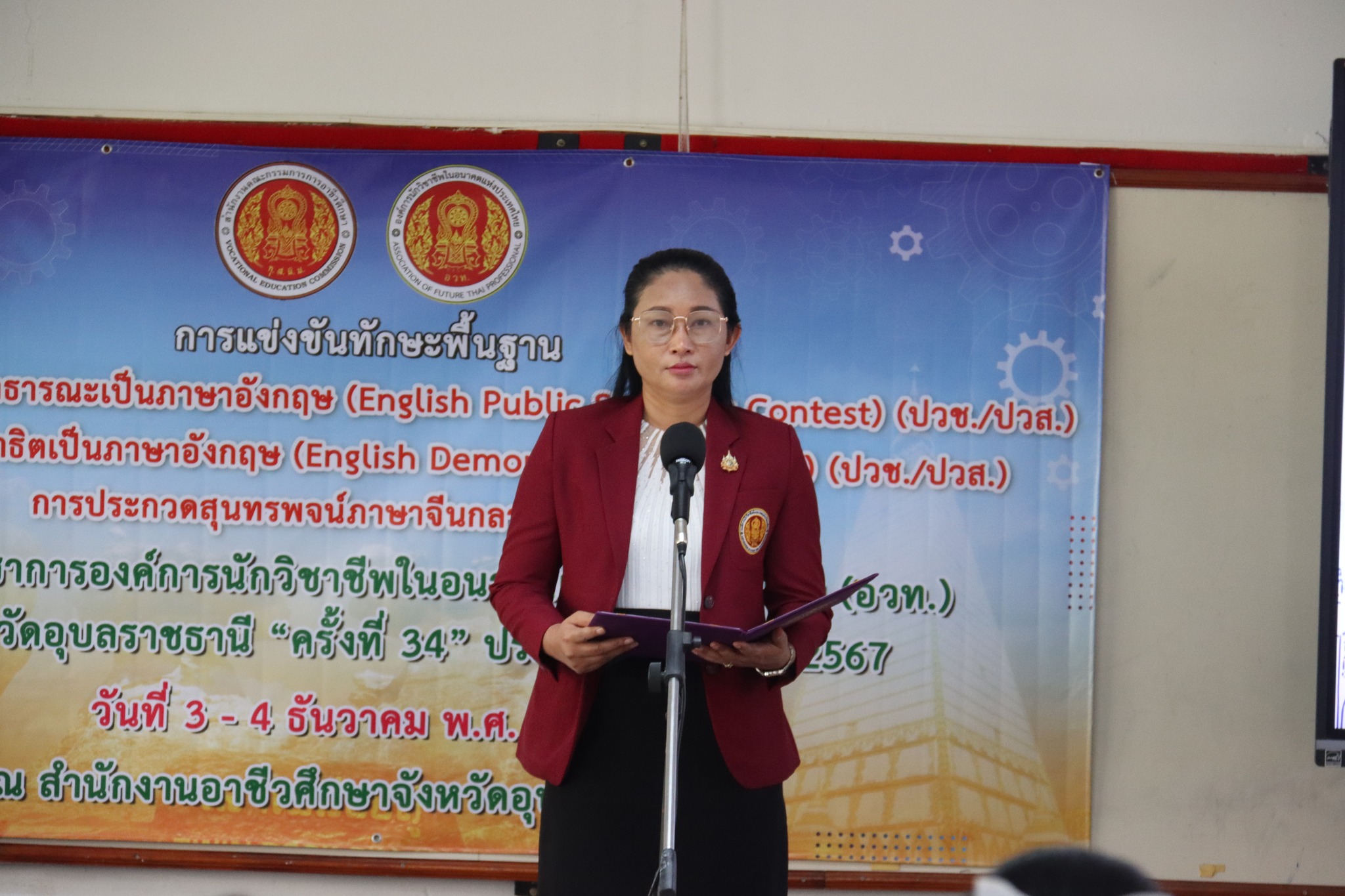 อสจ.อุบลฯ จัดพิธีเปิดการเเข่งขันทักษะพื้นฐาน การประกวดพูดในที่สาธารณะเป็นภาษาอังกฤษ (ปวช./ปวส.) การประกวดพูดสาธิตเป็นภาษาอังกฤษ (ปวช./ปวส.) และการประกวดสุนทรพจน์ภาษาจีนกลาง (ปวช./ปวส.)