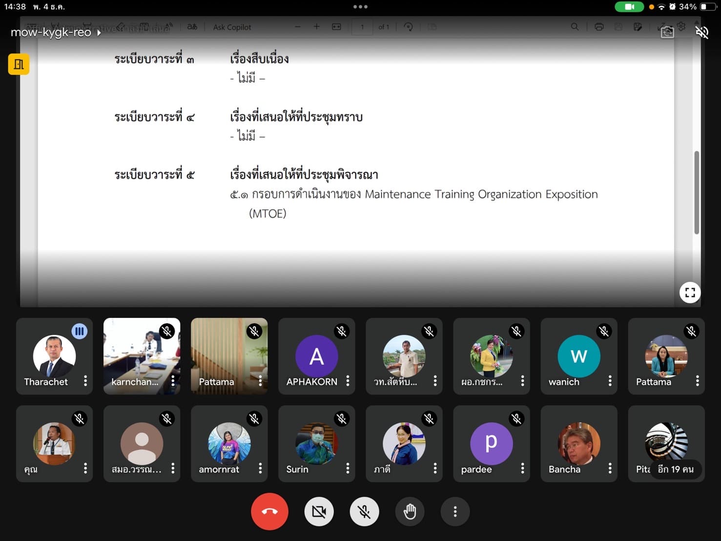 วันที่ ๔ ธันวาคม ๒๕๖๗ เวลา ๑๓.๓๐ น. นายธาตรี พิบูลมณฑา ผู้อำนวยการวิทยาลัยเทคนิคอุบลราชธานี ให้เกียรติร่วมการประชุม เตรียมความพร้อมจัดทำ Maintenance Training Organization Exposit ion(MTOE) ผ่านระบบออนไลน์ Google Meet ณ ห้องเรียนทฤษฎี ๒ แผนกวิชาช่างอากาศยาน อาคารเรียน ๖ โดยมี นายสุวิชา มั่นยืน รองผู้อำนวยการฝ่ายวิชาการ (Head of Training) ดร.ทิพวรรณ สายพิณ Quality Assurance Manager พร้อมด้วยคณะ Managers และ Staff ทุกคนเข้าร่วมประชุมอย่างพร้อมเพรียง