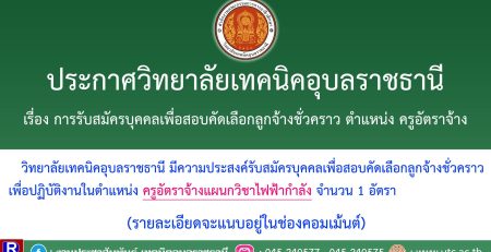 FacebookTwitterLineประกาศวิทยาลัยเทคนิคอุบลราชธานี เรื่อง รับสมัครบุคคลเพื่อสอบคัดเลือกลูกจ้างชั่วคราว ตำแหน่ง ครูอัตราจ้าง ด้วย (เพิ่มเติม…) FacebookTwitterLine read more