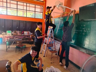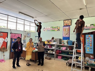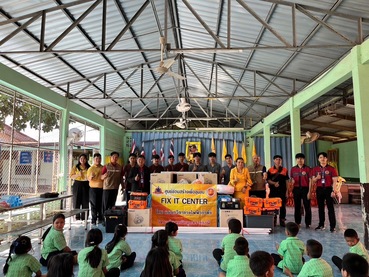 วท.อุบลฯ ขับเคลื่อนเครือข่ายอาชีวศึกษาพี่ช่วยน้องภายในจังหวัด ให้บริการซ่อมระบบไฟฟ้าภายในอาคาร และปรับปรุงระบบเสียงตามสาย ณ โรงเรียนบ้านยางสักกระโพหลุ่ม อำเภอม่วงสามสิบ จังหวัดอุบลราชธานี