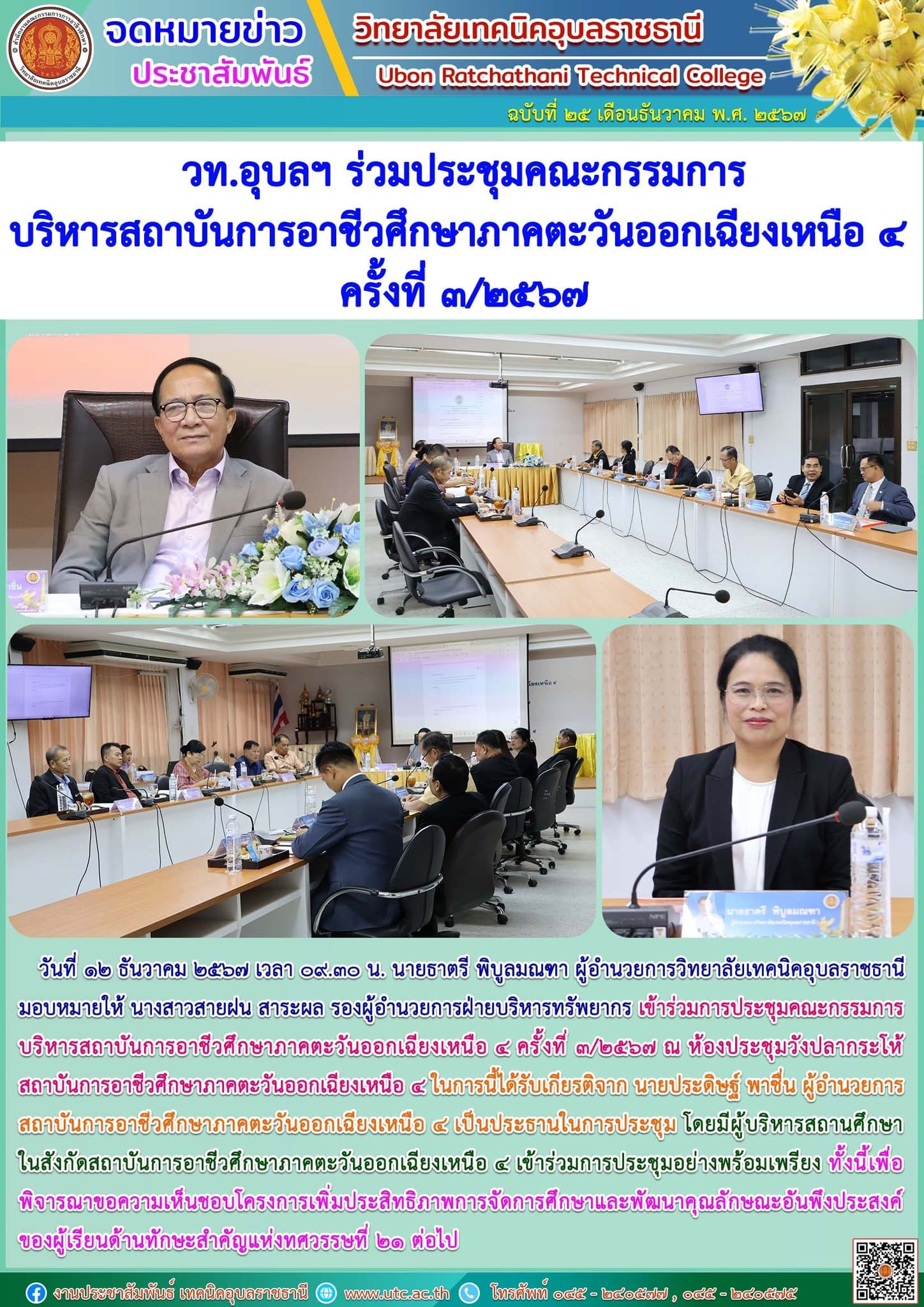 วท.อุบลฯ ร่วมประชุมคณะกรรมการ บริหารสถาบันการอาชีวศึกษาภาคตะวันออกเฉียงเหนือ ๔ ครั้งที่ ๓/๒๕๖๗