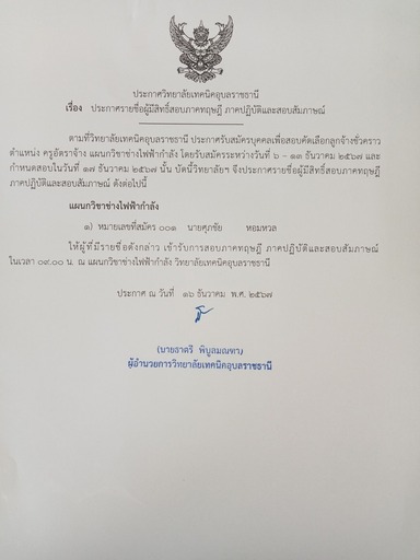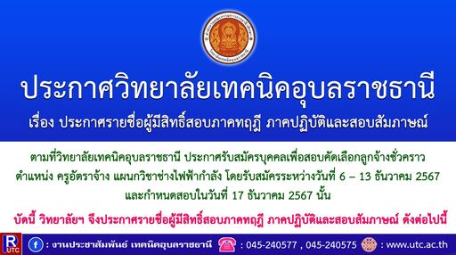 ประกาศวิทยาลัยเทคนิคอุบลราชธานี