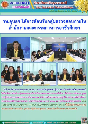 วท.อุบลฯ ให้การต้อนรับกลุ่มตรวจสอบภายในสำนักงานคณะกรรมการการอาชีวศึกษา