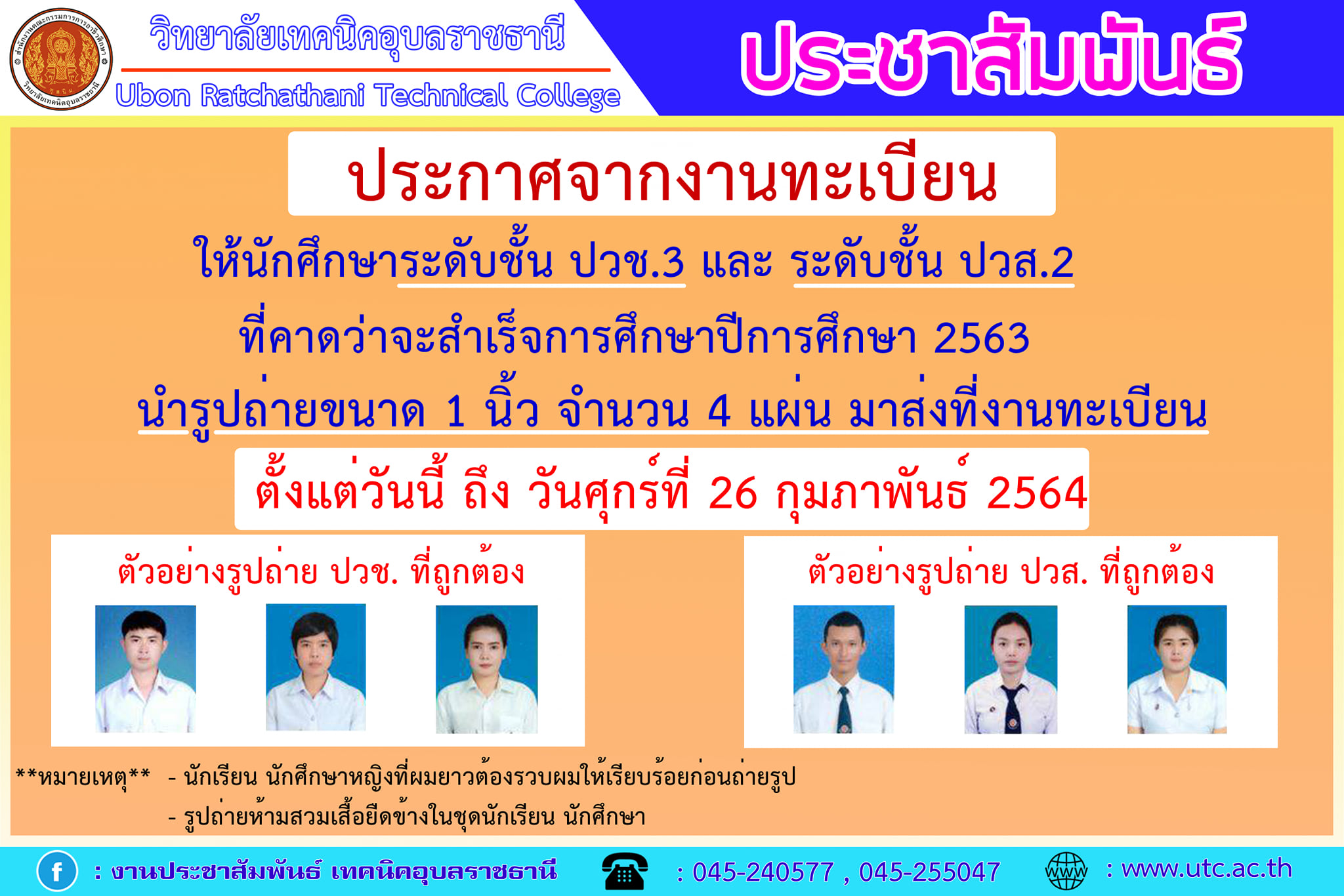 ประกาศวิทยาลัยเทคนิคอุบลราชธานี เรื่อง การติดต่อรับคำร้องขอจบการศึกษา ประจำปีการศึกษา 2565