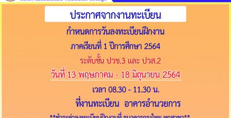 เรื่อง แจ้งกำหนดการลงทะเบียนรายวิชา ภาคเรียนที่ (เพิ่มเติม…)