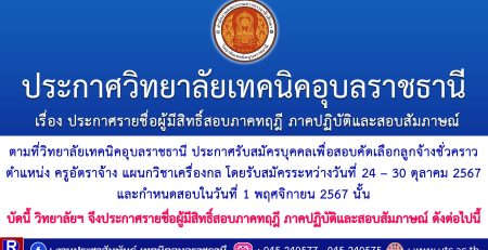 ตามที่วิทยาลัยเทคนิคอุบลราชธานี ประกาศ (เพิ่มเติม…)