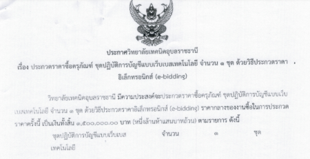 ประกาศ ประกวดราคาซื้อเครื่องมือประจำตัวผู้เรียนเฉพาะอาชีพ ระดับ ปวช.1 ปีการศึกษา 2567 ปีงบประมาณ พ.ศ.2568 ด้วยวิธีประกวดราคาอิเล็กทรินิกส์ (e-bidding)