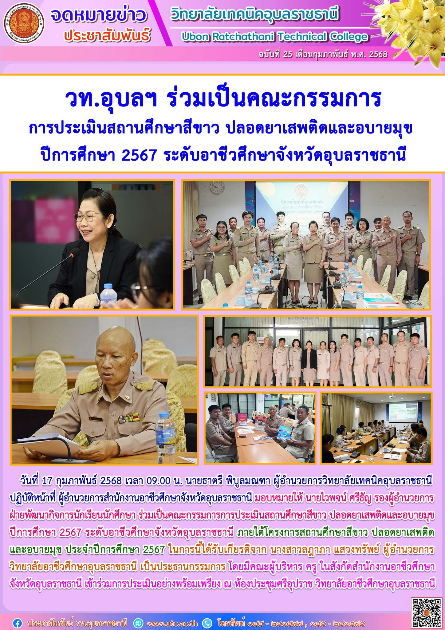 การประเมินสถานศึกษาสีขาว ปลอดยาเสพติดและอบายมุข ปีการศึกษา 2567 ระดับอาชีวศึกษาจังหวัดอุบลราชธานี