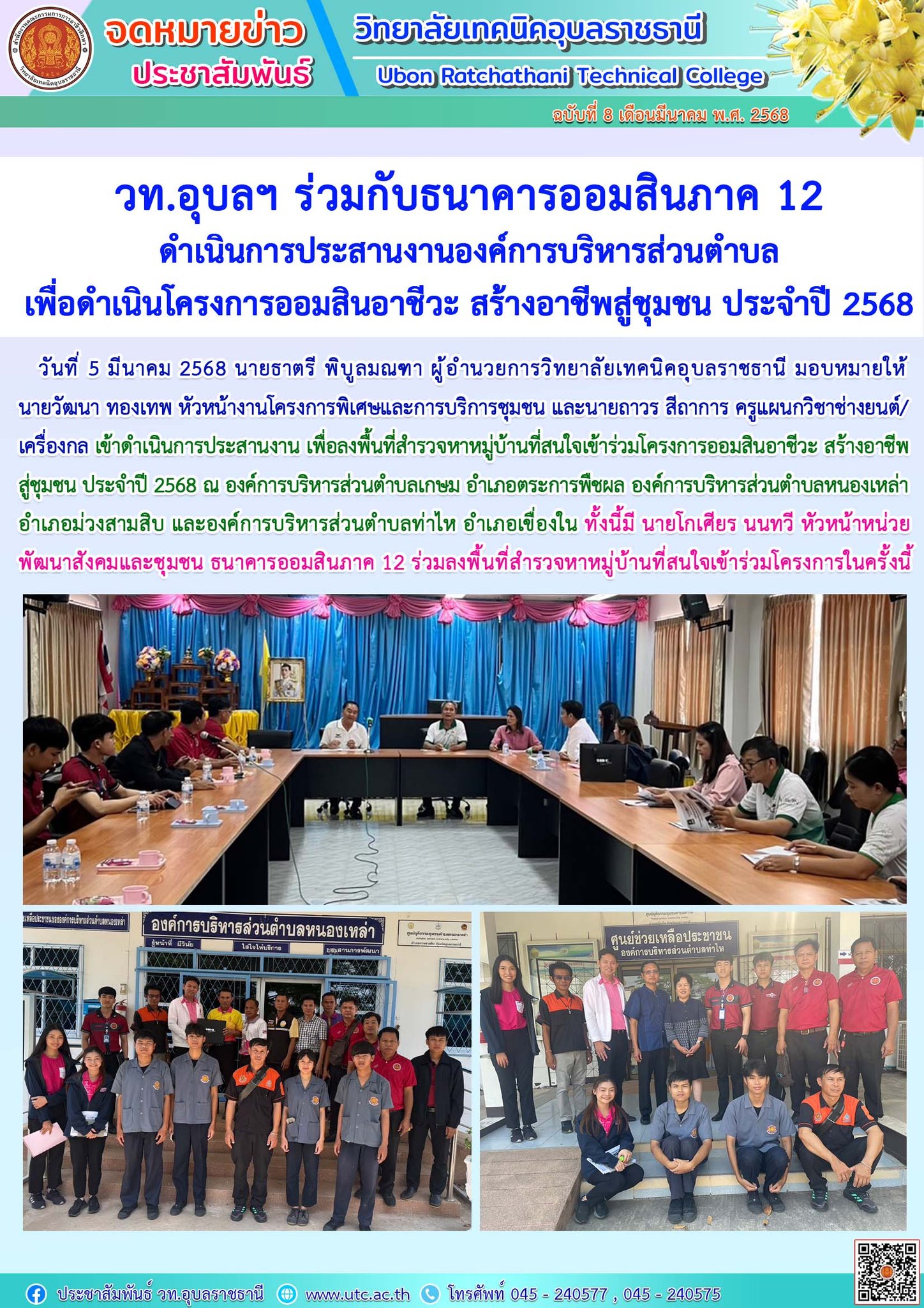 วท.อุบลฯ ร่วมกับธนาครออมสินภาค12 ดำเนินการประสานงานองค์การบริหารส่วนตำบล เพื่อโครงการออมสินอาชีวะ สร้างอาชีพสู่ชุมชน ประจำปี2568