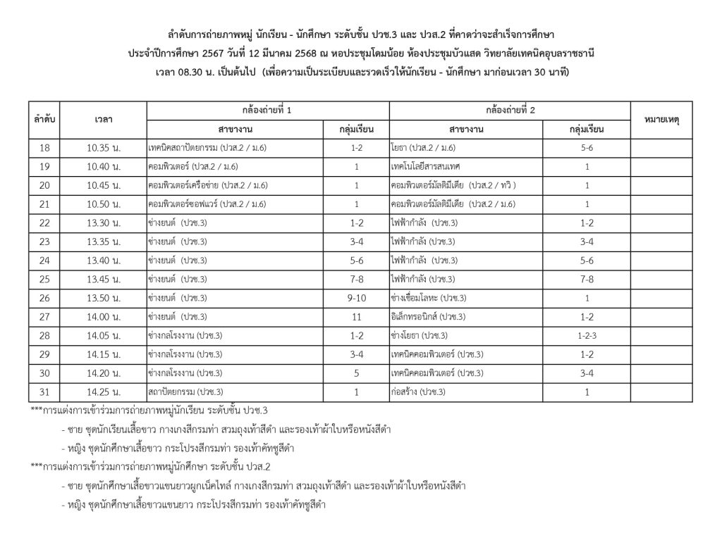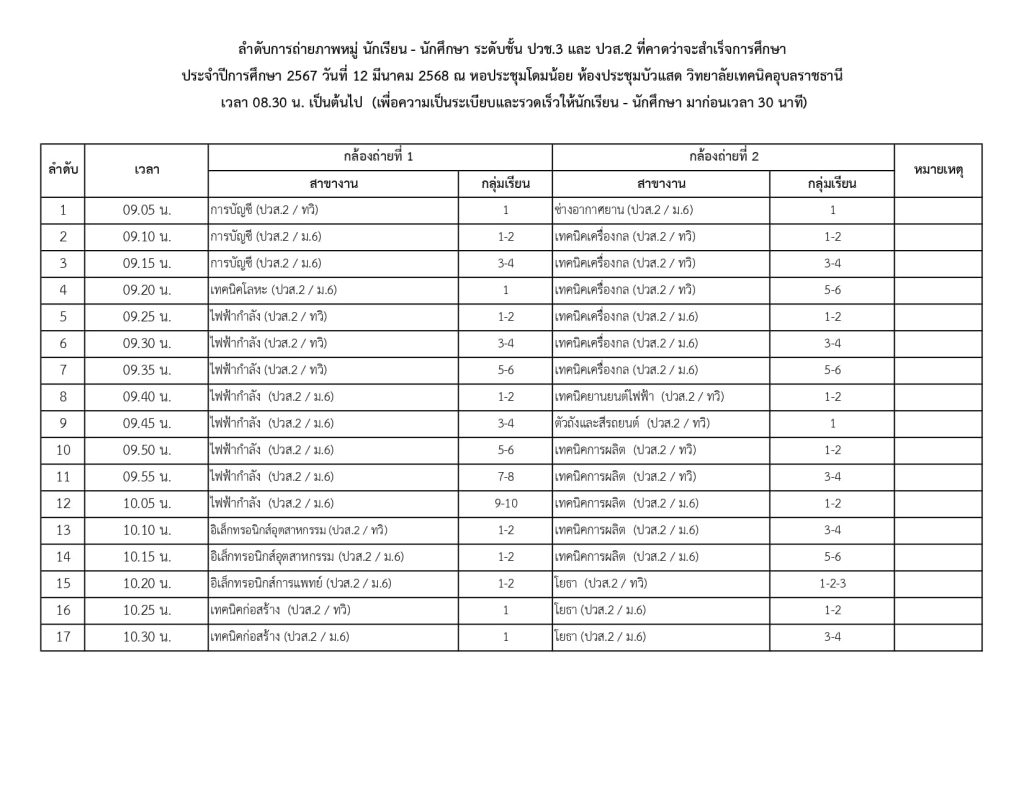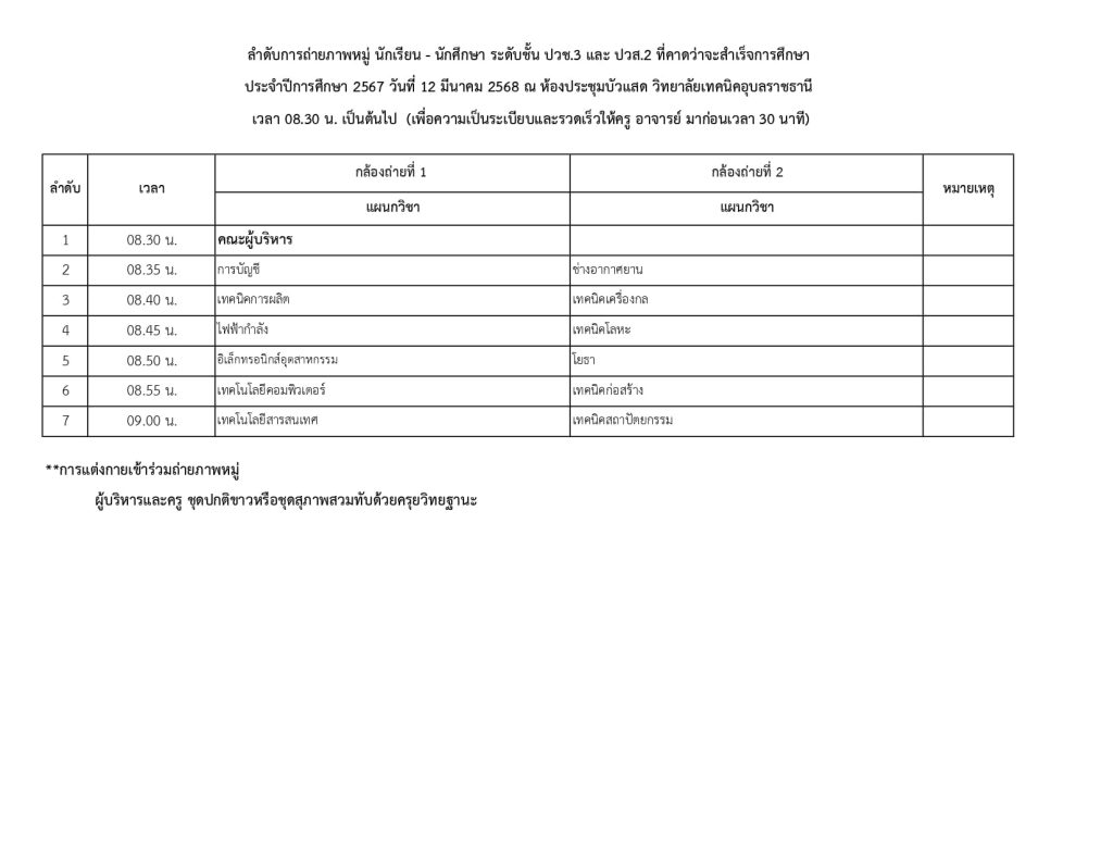 ประกาศแจ้ง กำหนดการถ่ายภาพหมู่ คณะผู้บริการ ครู นักเรียน นักศึกษา เข้าพิธีมอบประกาศนียบัตรผู้สำเร็จการศึกษา ประจำปีการศึกษา 2567