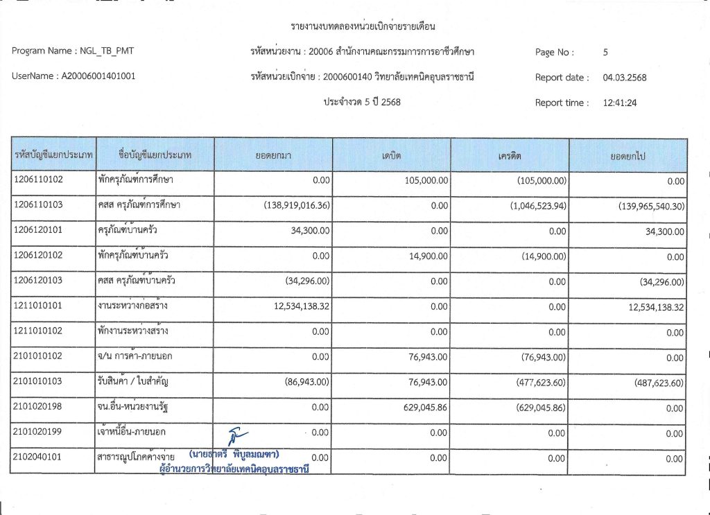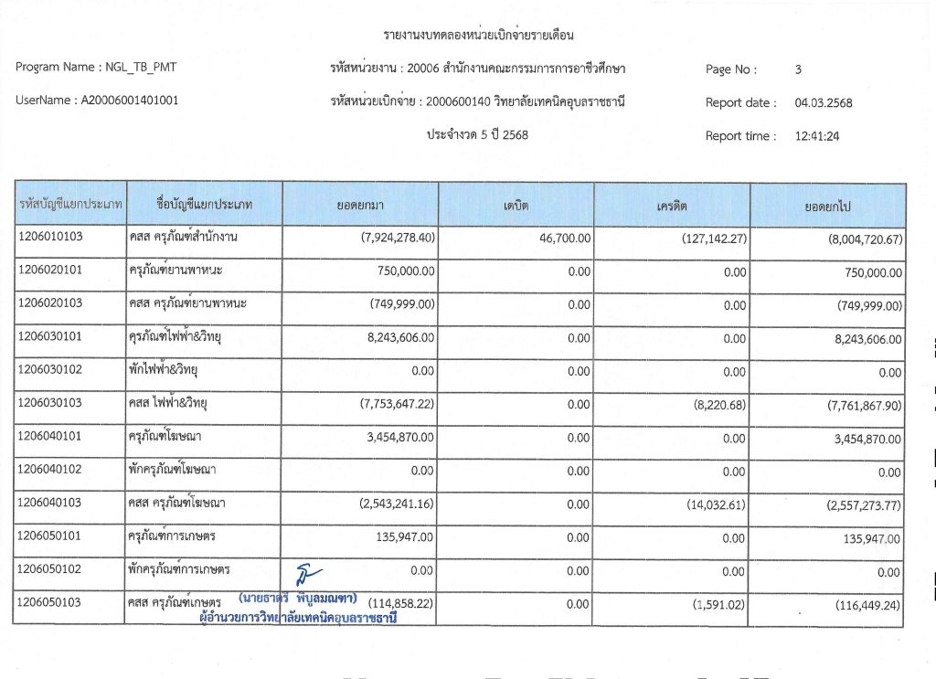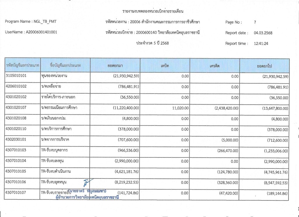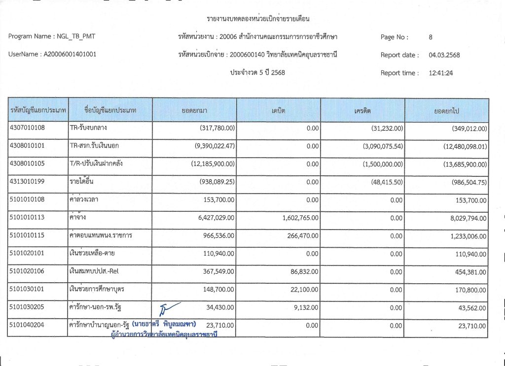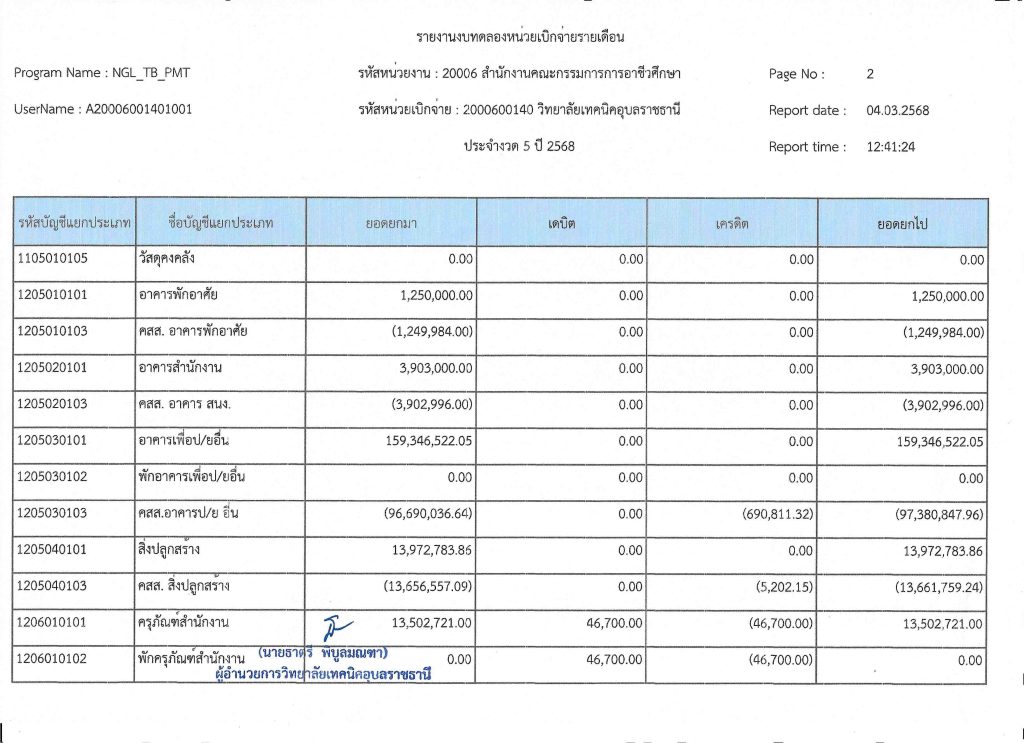 รายงานงบทดลองประจำเดือนกุมภาพันธ์ 2568