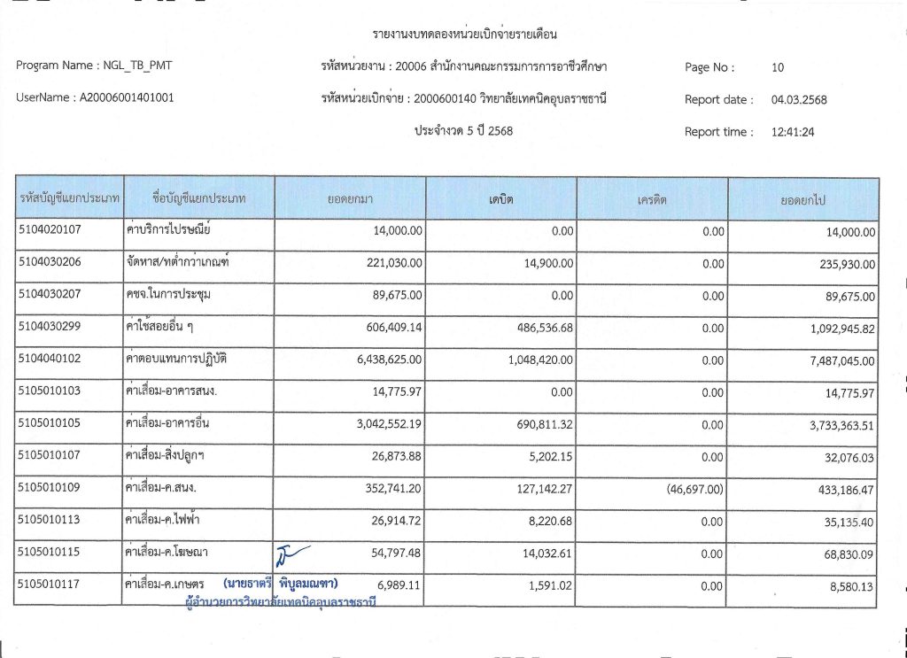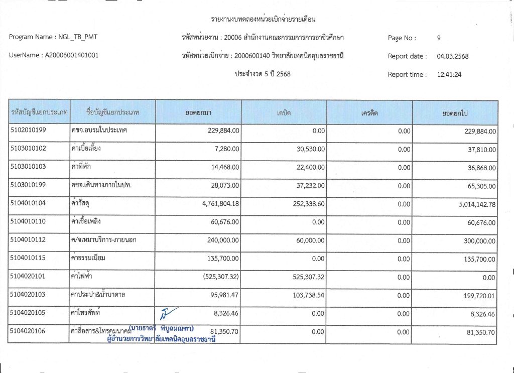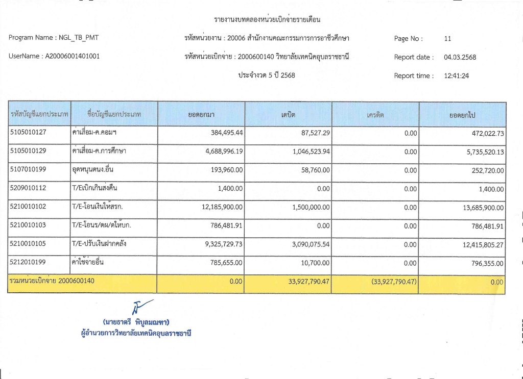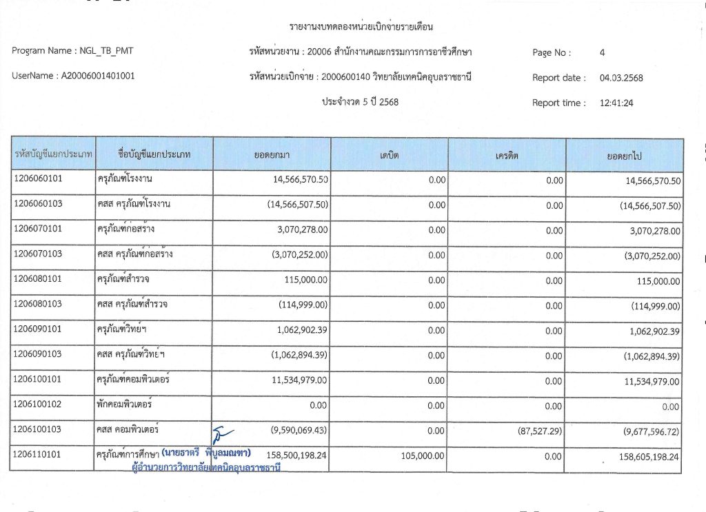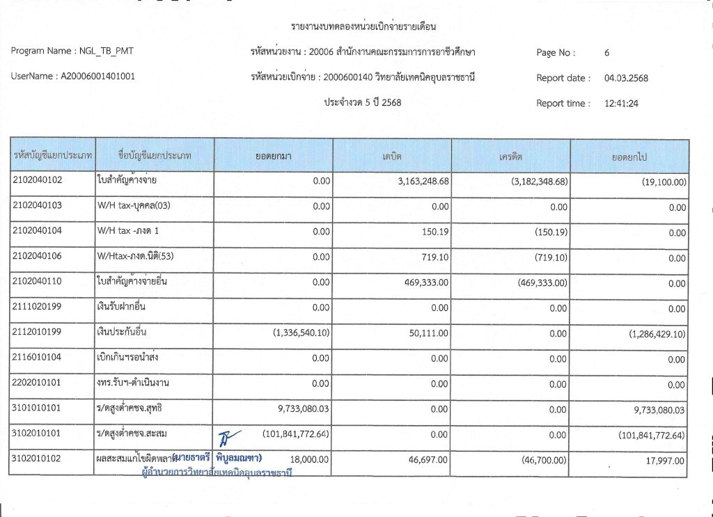 รายงานงบทดลองประจำเดือนกุมภาพันธ์ 2568