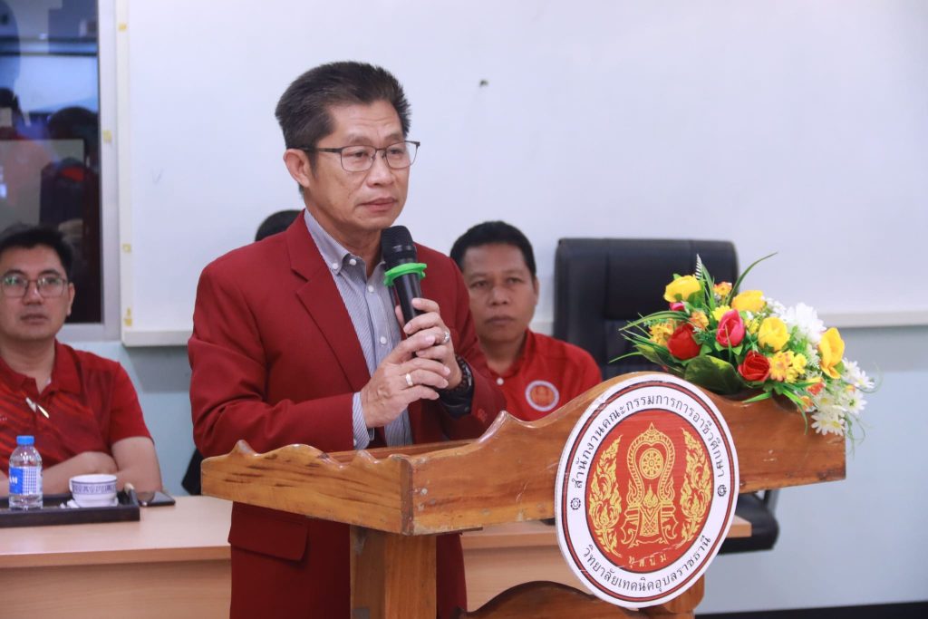 วันที่ 19 มีนาคม 2568 เวลา 10.30 น. นายธาตรี พิบูลมณฑา ผู้อำนวยการวิทยาลัยเทคนิคอุบลราชธานี พร้อมด้วยนายไวพจน์ ศรีธัญ รองผู้อำนวยการฝ่ายพัฒนากิจการนักเรียน นักศึกษา และนายสุวิชา มั่นยืน รองผู้อำนวยการฝ่ายวิชาการ ให้เกียรติเข้ารับฟังการนำเสนอ Proposal โครงการออมสินอาชีวะสร้างอาชีพสู่ชุมชน ปี 2568 เสริมความรู้ สร้างอาชีพ พัฒนาเศรษฐกิจชุมชน ณ ห้องเรียนอัจฉริยะ Smart Classroom ซึ่งเป็นความร่วมมือระหว่างวิทยาลัยเทคนิคอุบลราชธานี และธนาคารออมสินภาค ๑๒ ในการนี้ได้รับเกียรติจาก คุณวิลานี แซ่แต้ ผู้อำนวยการฝ่ายพัฒนาธุรกิจผู้ประกอบการรายย่อยและองค์กรชุมชน พร้อมด้วยคณะผู้บริหารธนาคารออมสินสำนักงานใหญ่ เข้าร่วมรับฟังผ่านระบบออนไลน์ โดยมี นายโกเศียร นนทวี ผู้ช่วยผู้อำนวยการธนาคารออมสินภาค 12 หน่วยพัฒนาสังคมและชุมชน คุณจริยา ศิลปรายะ ผู้จัดการธนาคารออมสินสาขาอุบลราชธานี คุณจันทร์จิรา สอดศรี ผู้จัดการธนาคารออมสินสาขาถนนแจ้งสนิท นายวัฒนา ทองเทพ หัวหน้างานโครงการพิเศษและการบริการชุมชน พร้อมด้วยคณะครูแผนกวิชาช่างยนต์/เครื่องกล แผนกวิชาอิเล็กทรอนิกส์ และแผนกวิชาช่างไฟฟ้ากำลัง นำนักเรียน ระดับปวช. เข้าร่วมการนำเสนอโครงการอย่างพร้อมเพรียง ทั้งนี้เพื่อพัฒนาทักษะนักเรียน นักศึกษา ให้เกิดการเรียนรู้เชิงประสบการณ์ และเพื่อพัฒนาทักษะด้านช่าง/งานฝีมือ เพื่อให้สมาชิกในชุมชน มีความรู้ความสามารถด้านวิชาช่าง สามารถแก้ไขปัญหาเบื้องต้นได้เอง ตลอดจนสามารถนำความรู้ที่ได้รับไปประกอบอาชีพต่อไป