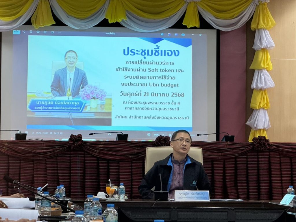 วันที่ 21 มีนาคม 2568 เวลา 09.00 น. นายธาตรี พิบูลมณฑา ผู้อำนวยการวิทยาลัยเทคนิคอุบลราชธานี ได้มอบหมายให้ นางสาวสายฝน สาระผล รองผู้อำนวยการฝ่ายบริหารทรัพยากร เข้าร่วมการประชุมชี้แจงการเปลี่ยนผ่านวิธีการเข้าใช้งานระบบ New GFMIS Thai สู่ระบบการพิสูจน์ยืนยันตัวตน Soft Token สำหรับหัวหน้าส่วนราชการ และการใช้งานระบบติดตามการใช้จ่ายงบประมาณ (Ubn budget) ในการนี้ได้รับเกียรติจาก นายภูษิต น้อยโสภากุล รองผู้ว่าราชการจังหวัดอุบลราชธานี เป็นประธานในการประชุม มีหัวหน้าส่วนราชการ และหน่วยงานต่างๆ เข้าร่วมการประชุมอย่างพร้อมเพรียง ณ ห้องประชุมพรหมวรราช ชั้น 4 อาคารศาลากลางจังหวัดอุบลราชธานี ทั้งนี้เพื่อให้การเปลี่ยนผ่านวิธีการเข้าใช้งานระบบ New GFMIS Thai สู่ระบบ Soft Token เป็นไปด้วยความเรียบร้อยและเป็นไปตามหลักเกณฑ์ที่กระทรวงการคลังกำหนดต่อไป