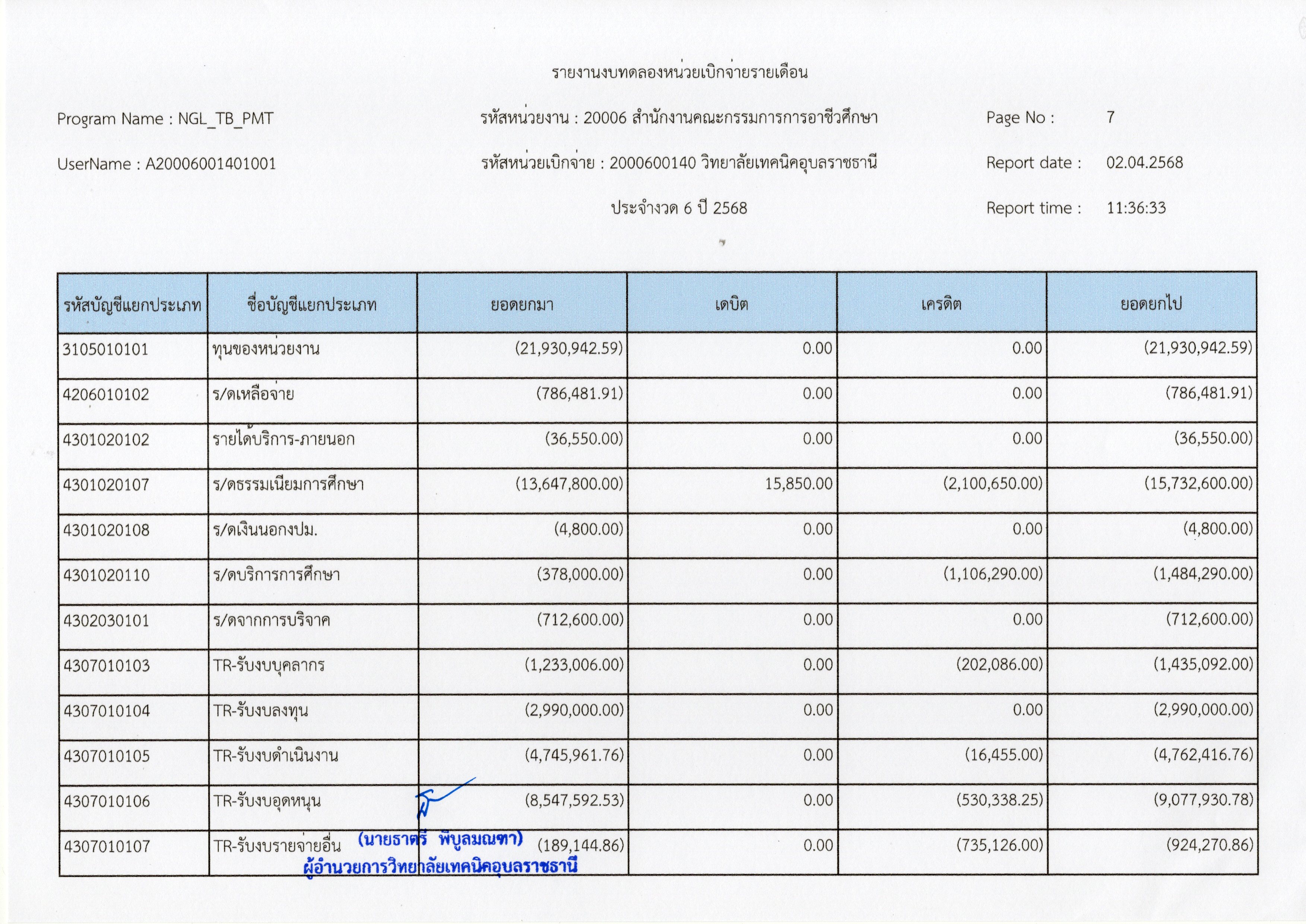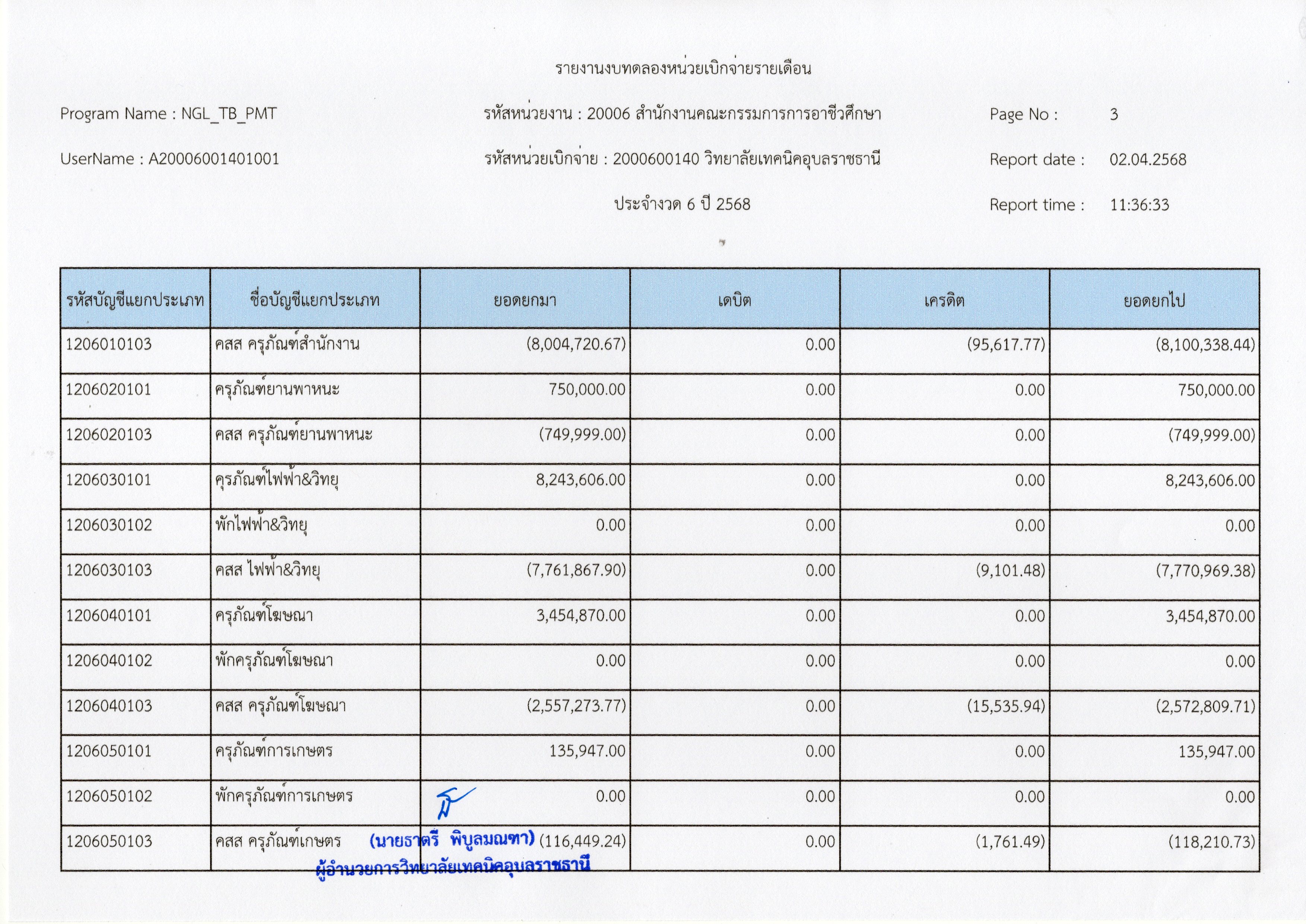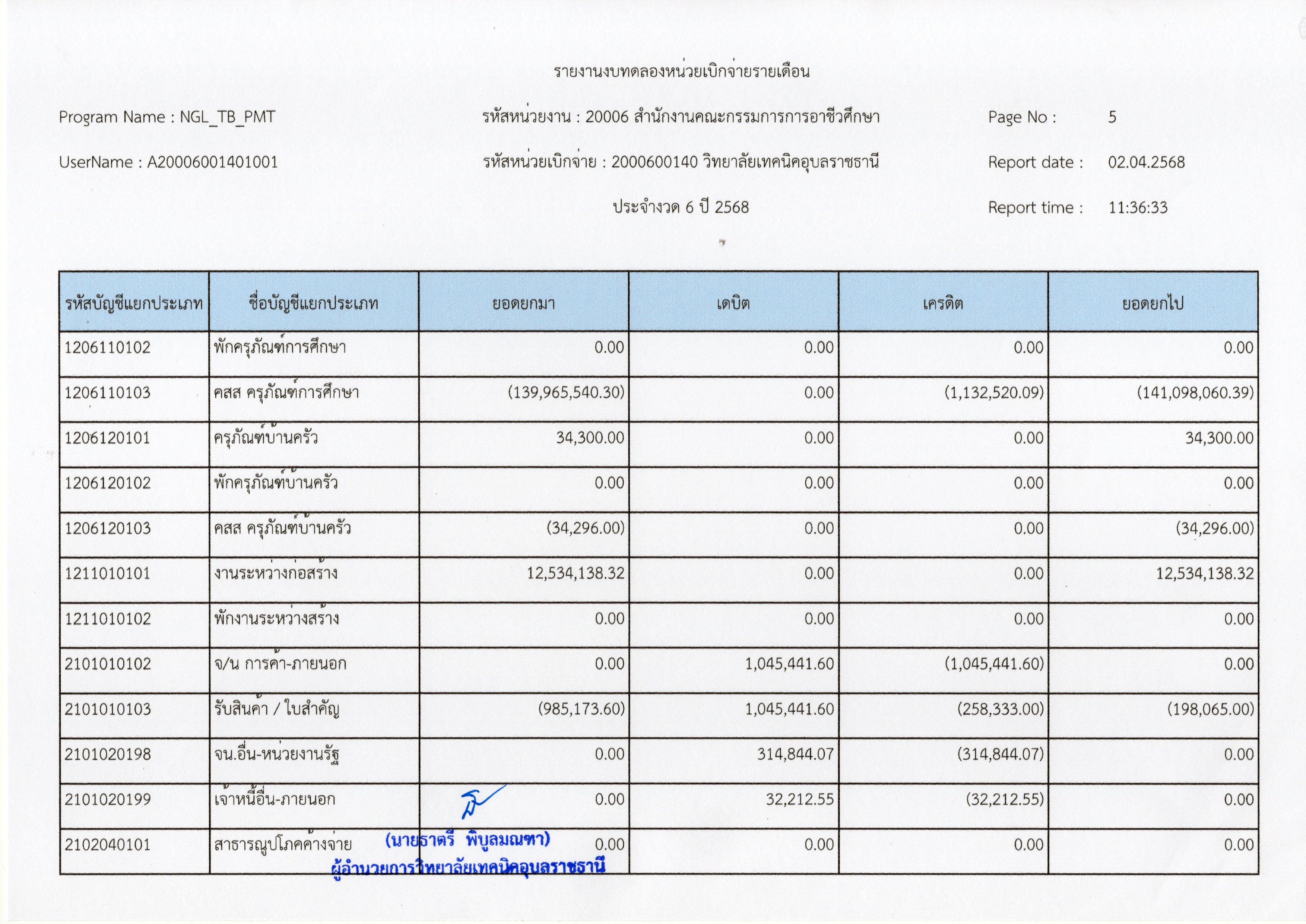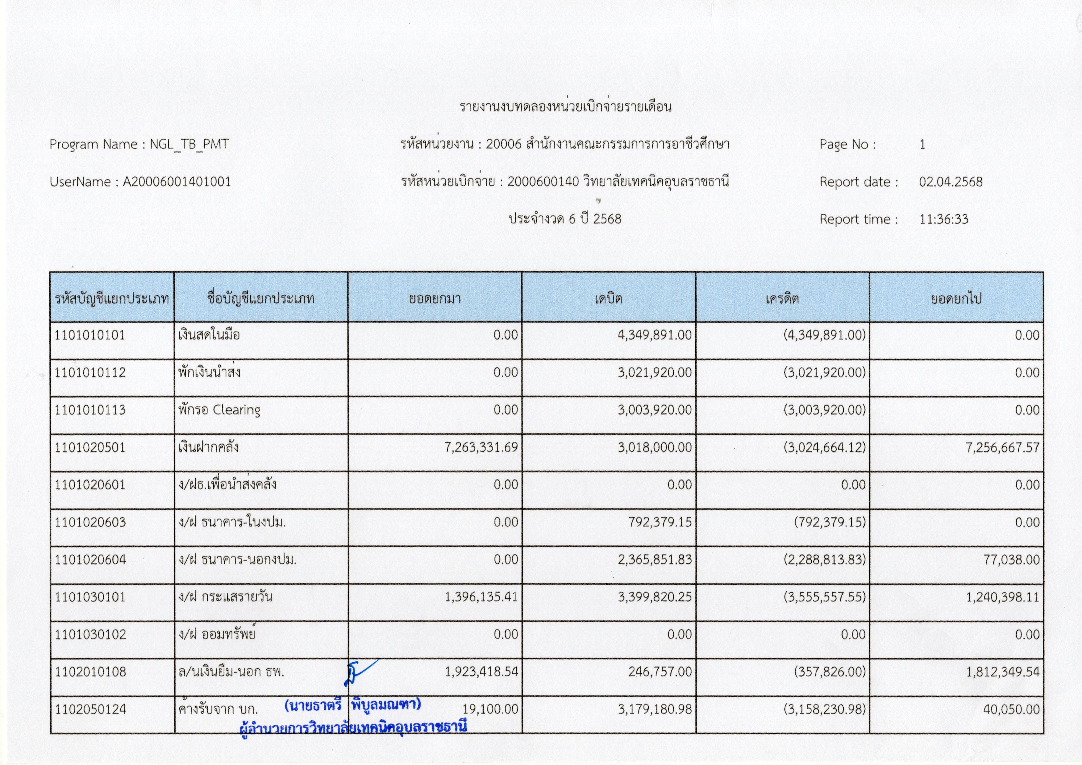 รายงานงบทดลองประจำเดือนมีนาคม 2568