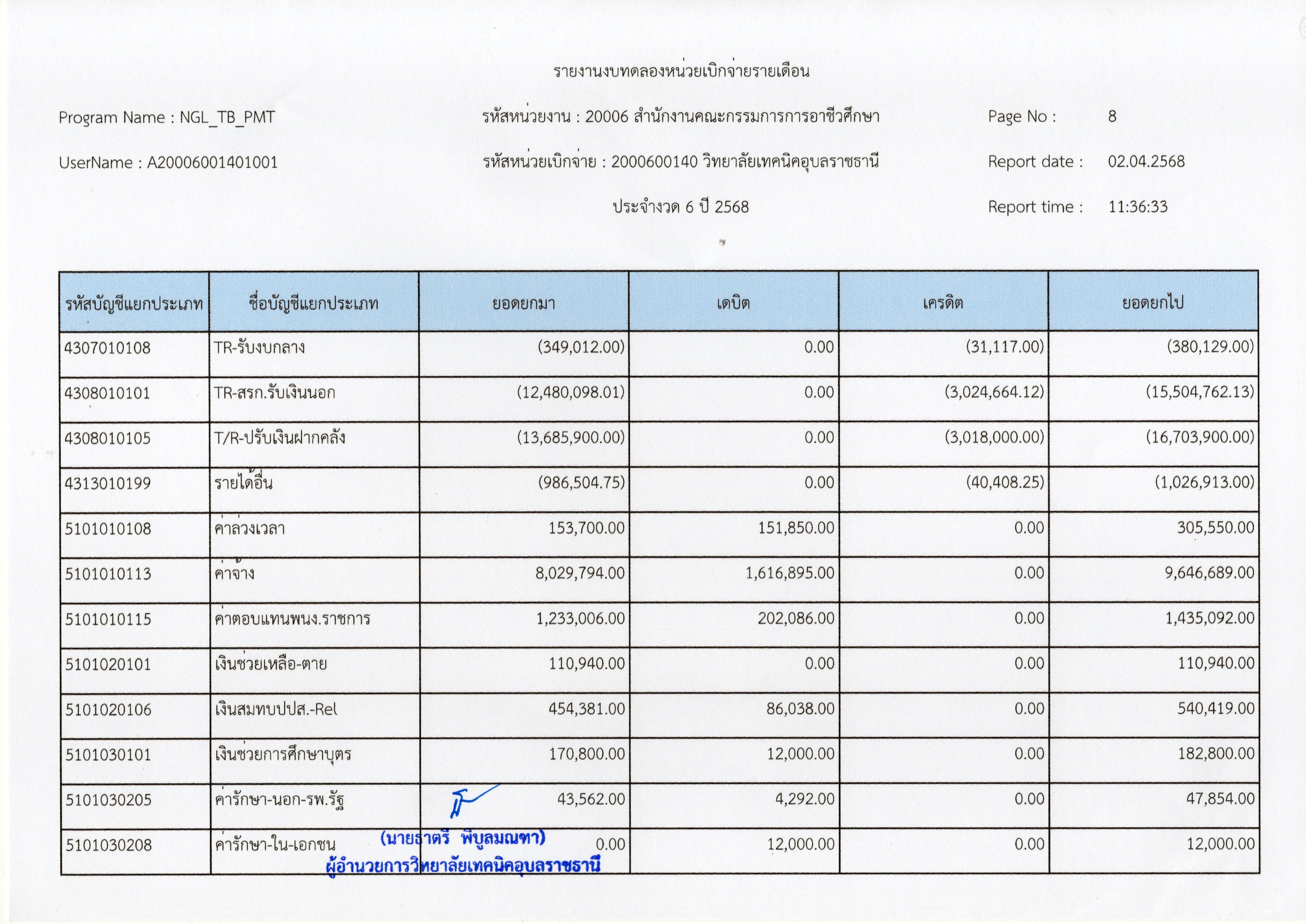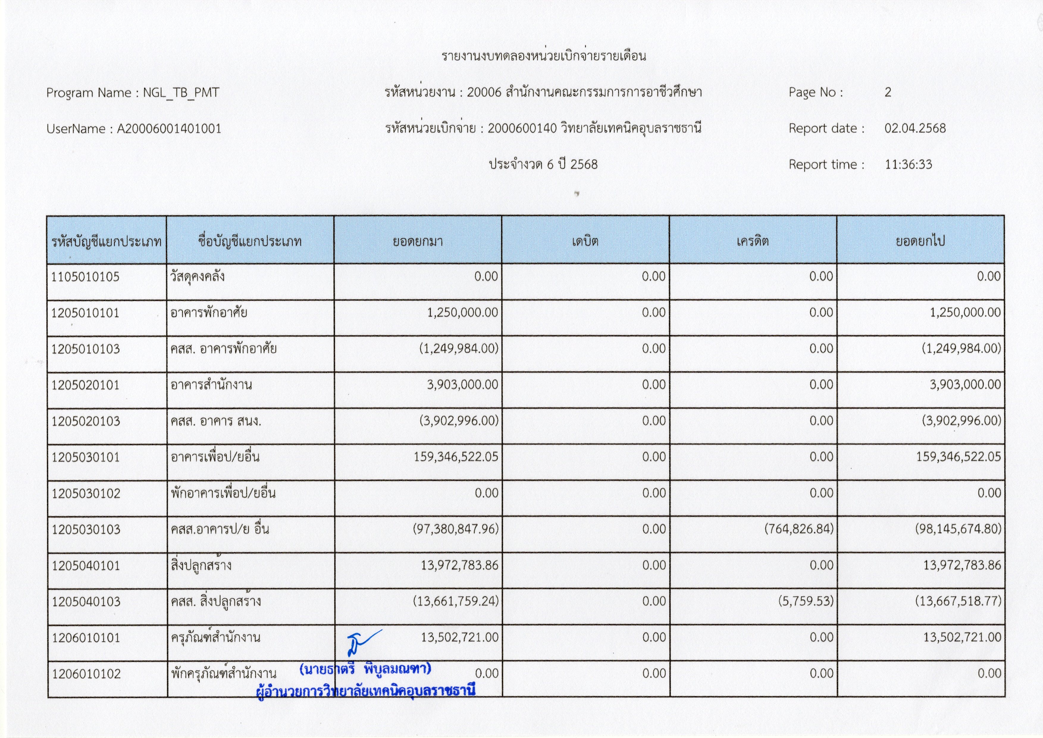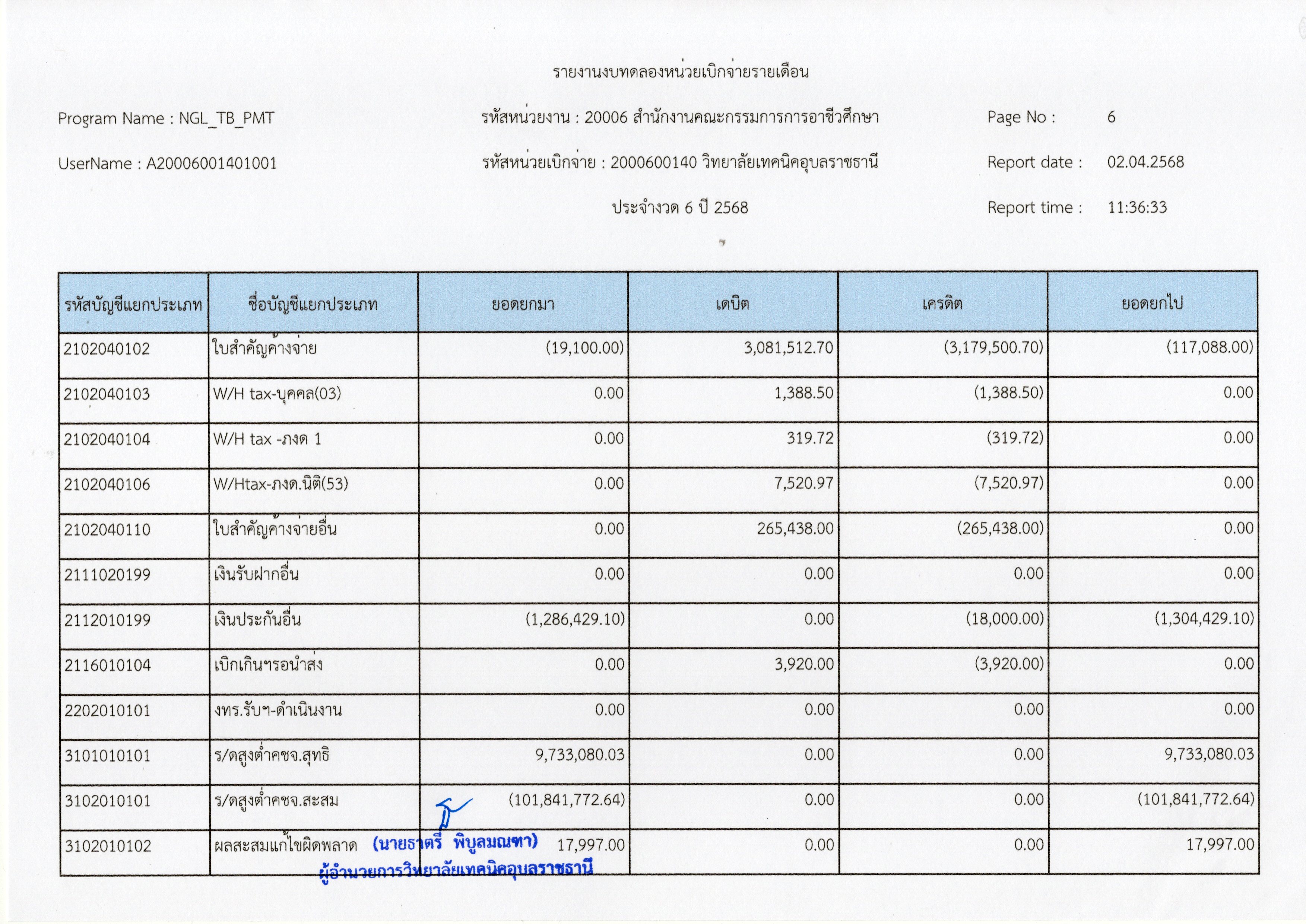 รายงานงบทดลองประจำเดือนมีนาคม 2568