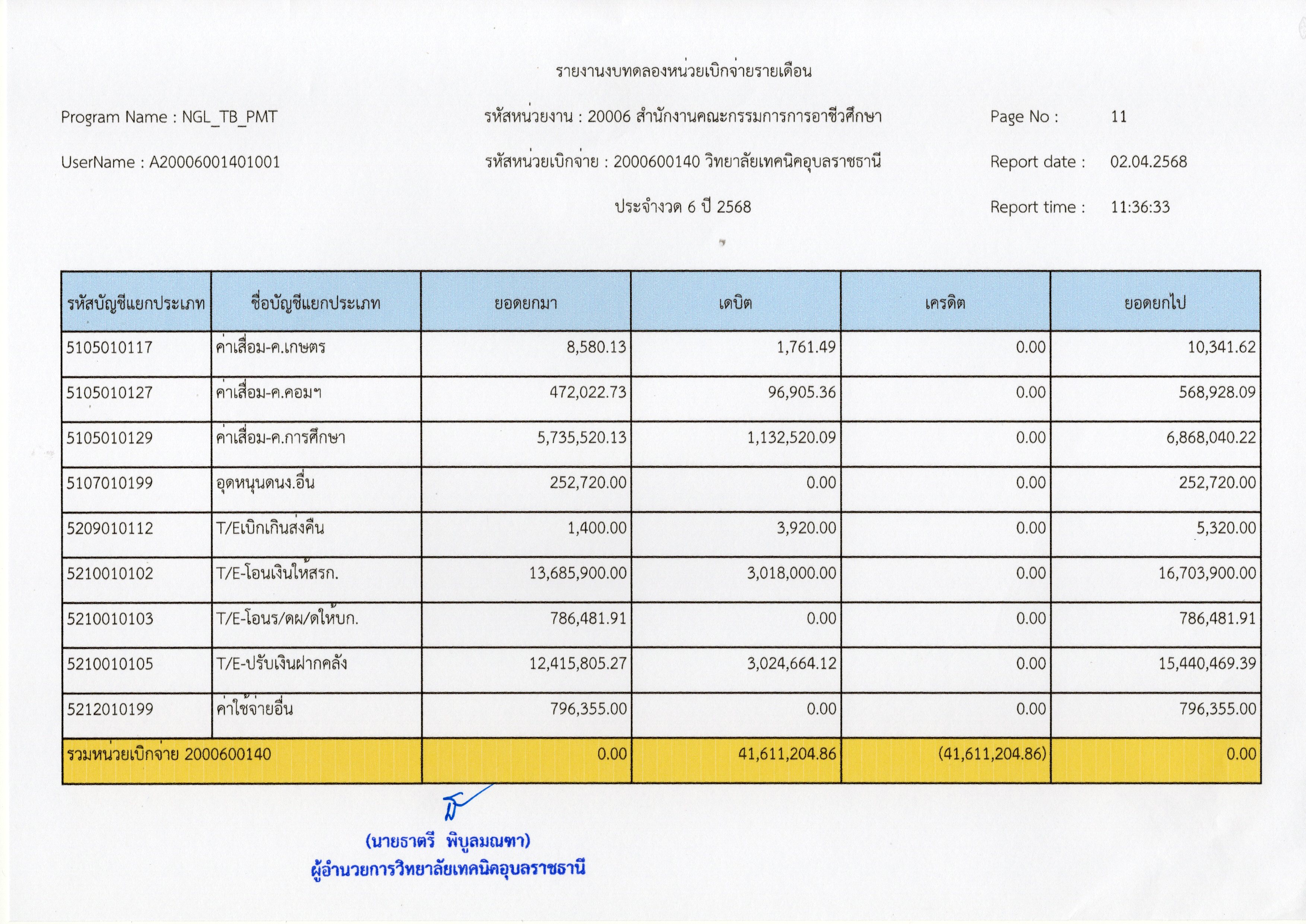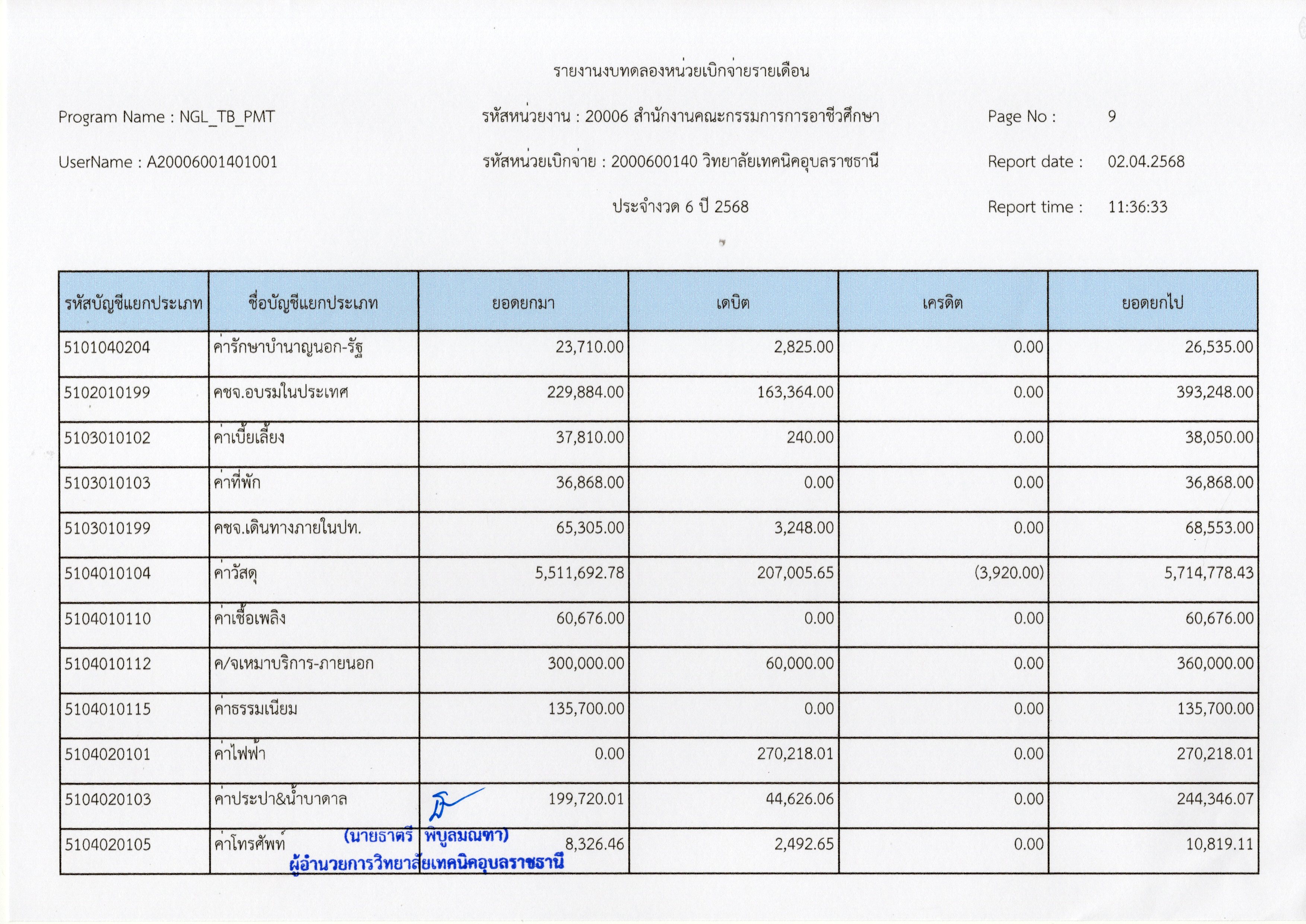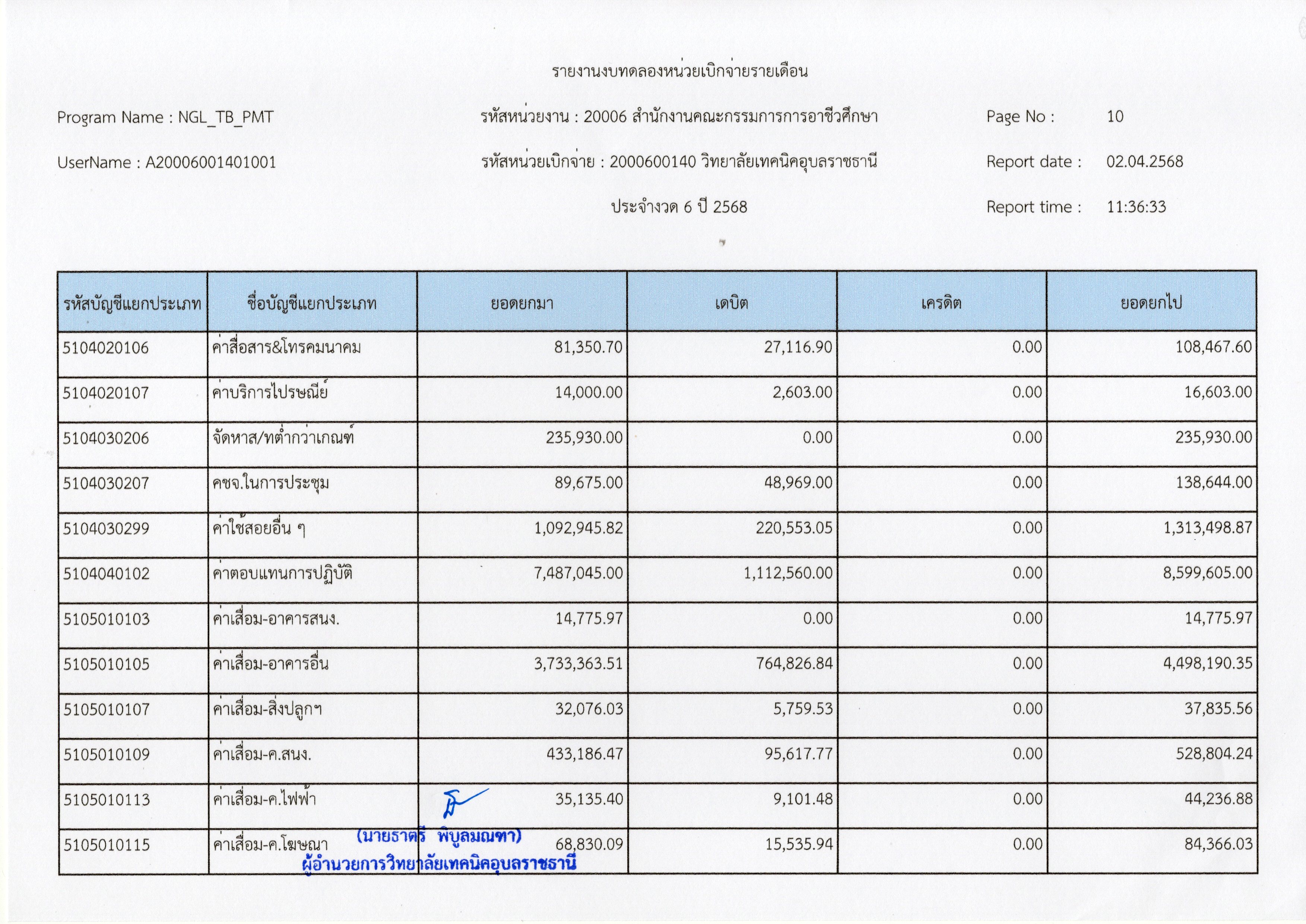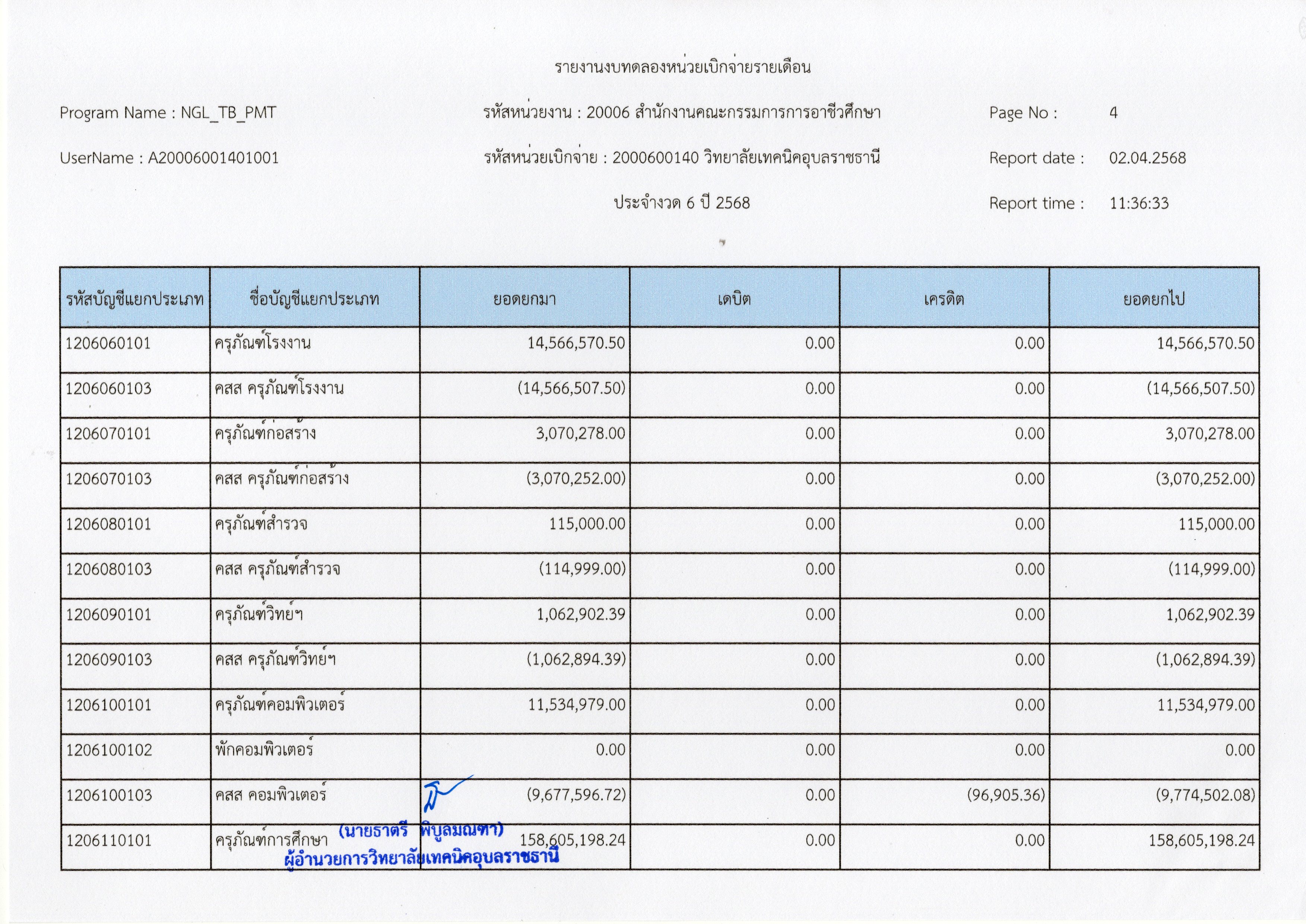 รายงานงบทดลองประจำเดือนมีนาคม 2568