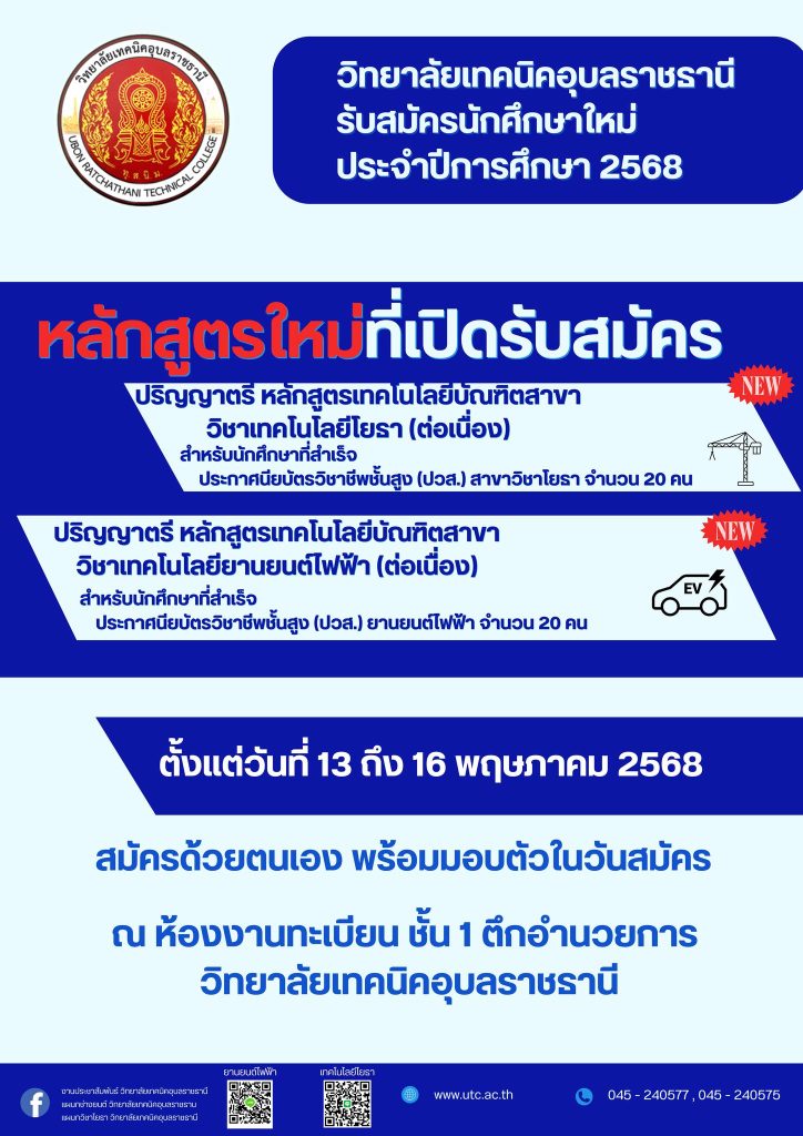 FacebookTwitterLineวันที่ ๒๘ ตุลาคม ๒๕๖๗ นายธาตรี พิบูลมณฑา ผู้อำนวยการวิทยาลัยเทคนิคอุบลราชธานี (เพิ่มเติม…)